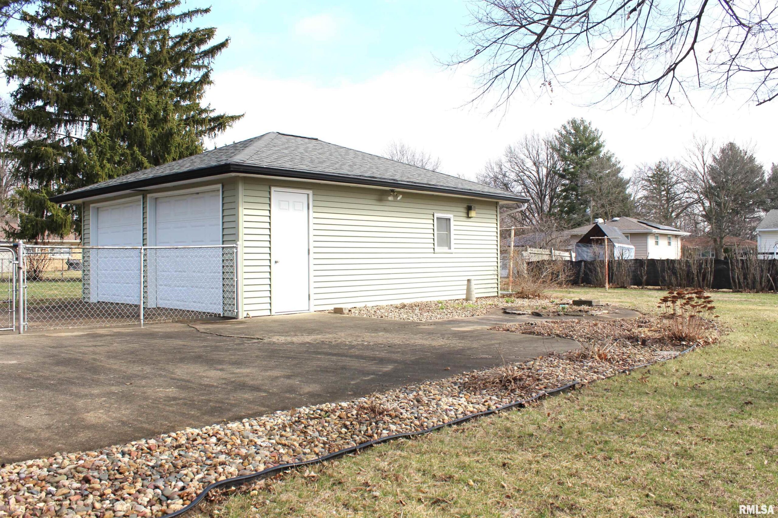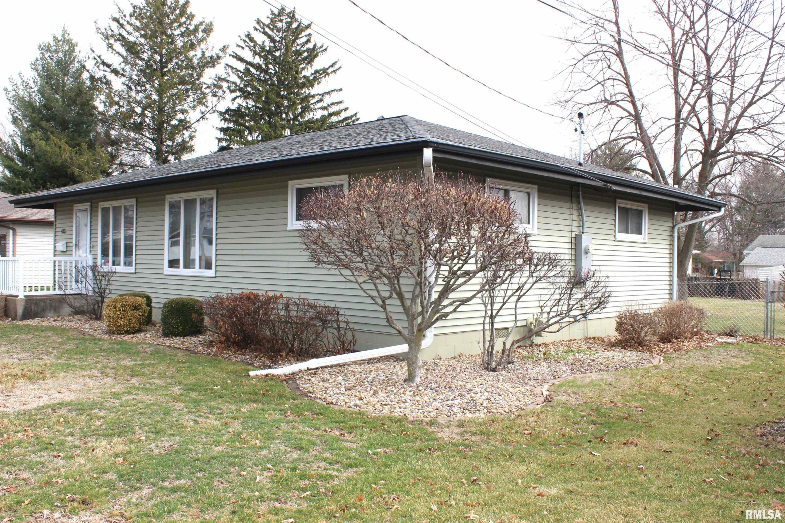 Move-in ready 2-bedroom, 1 bath home showcasing great curb appeal! The oversized living room is filled with an abundance of natural light from multiple grand picture windows. The practical kitchen has ample cabinets & counter space while the convenient breakfast bar opens to the dining room allowing for easy entertaining. Both bedrooms have large closets that offer a lot of storage and are located near the bathroom with a new walk-in shower, vanity, and closed off laundry. Outside features perfectly placed landscaping, a well-established garden area, fenced in backyard perfect for pets or play, a storage shed, and a detached 2-car garage. Updates include siding, new flooring and 2025 furnace & central air unit. Don't wait on this one! Schedule your private showing today!