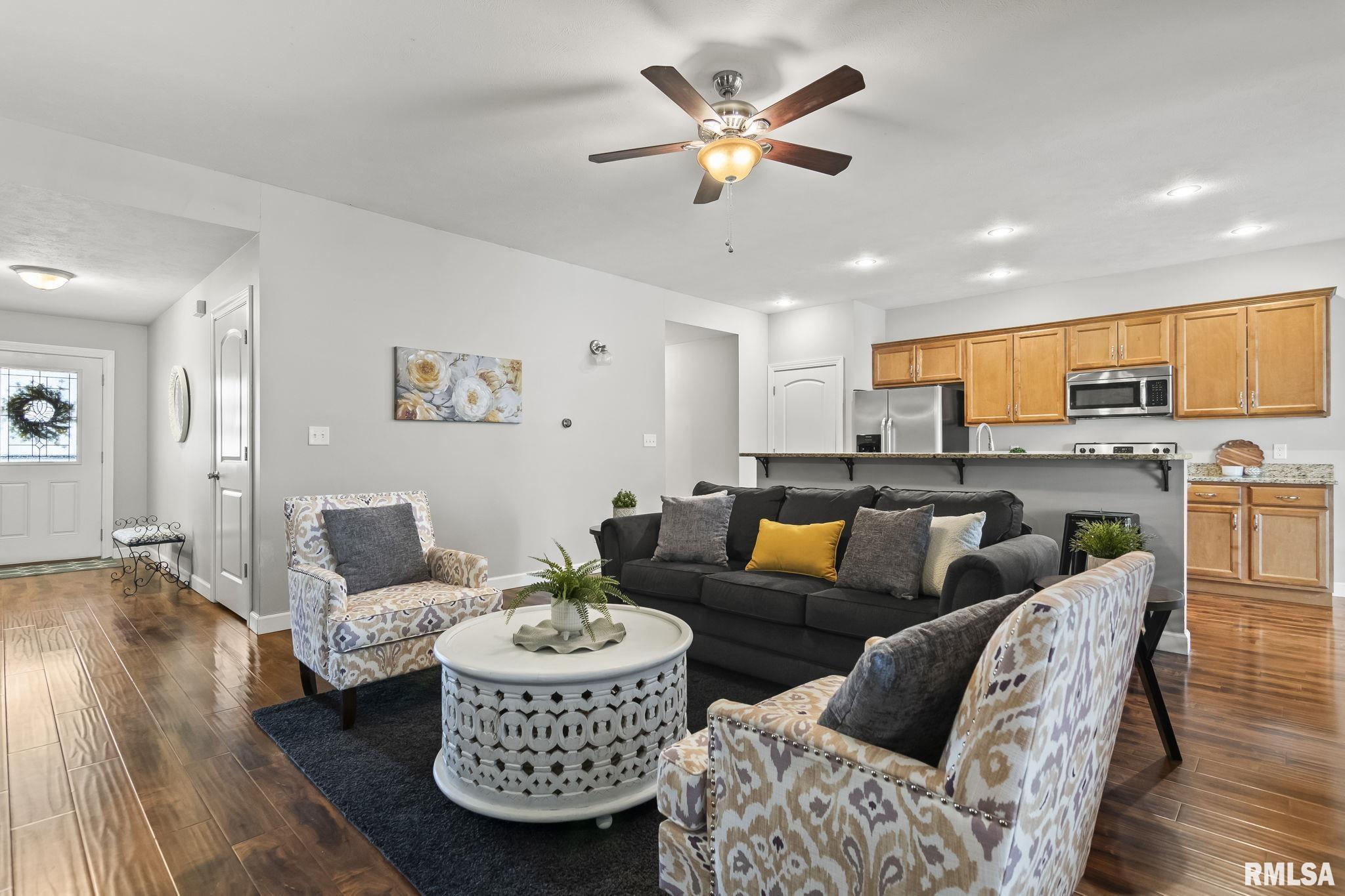 COMING SOON! Showings start Saturday March 21st for this spacious 4-bedroom, 3 bath ranch with finished basement. Located in popular Salem Estate Subdivision and Pleasant Plains School District. This beauty has the open floor plan and white trim package that most people are looking for. The kitchen has a large island, granite countertops, stainless steel appliances and soft close maple cabinets. There is a gas line behind the stove. Primary suite has dual vanities and large custom walk-in closet with built-in organizer system. Downstairs you will find a massive family room perfect for all the things. Built in beverage bar and trendy polished concrete floors. You will also find the 4th bedroom, full bath and LOTS of storage. Chill under you covered back patio overlooking the large, fenced back yard. Patio is set up with tv mount so you can keep up with the games while grilling. All appliances stay including washer/dryer. Bonus: 2nd stairway from basement to garage, smart thermostat, and Anderson tilt in windows. Convenient proximity to the walking trail, daycare, medical and shopping. Pre-inspected for buyer’s convenience.