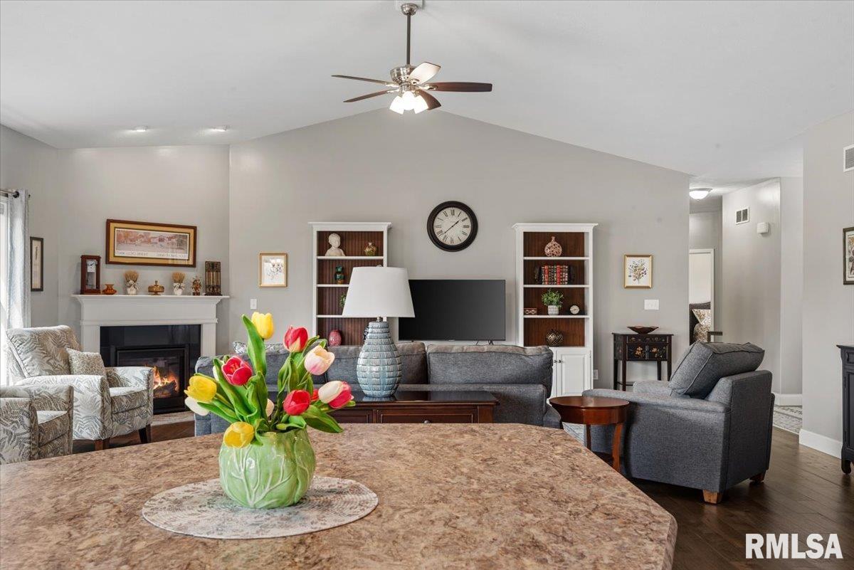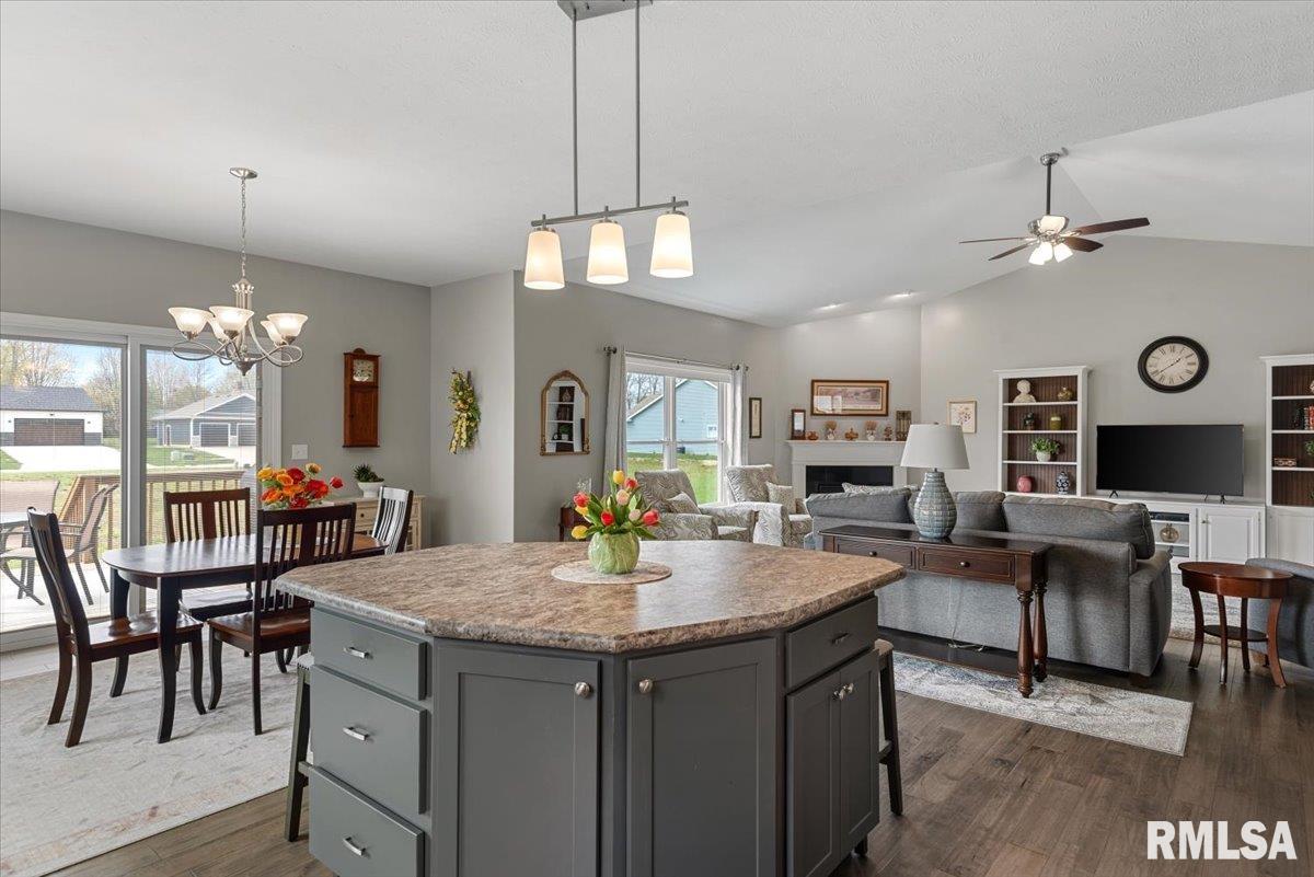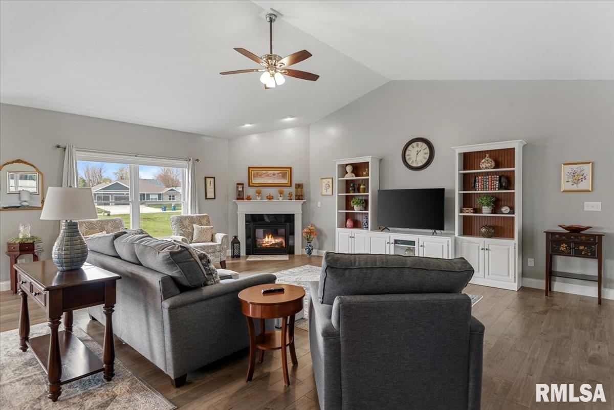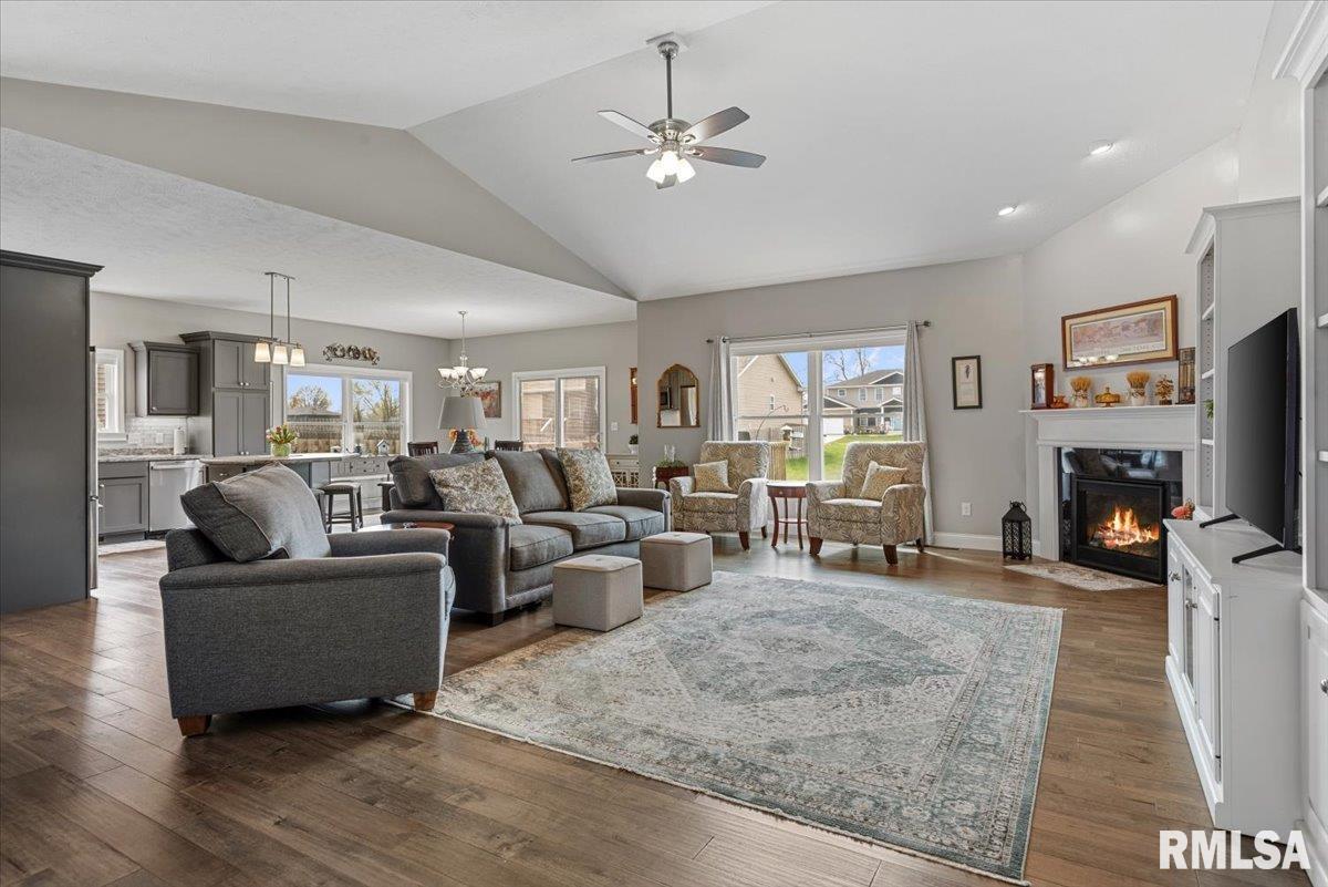 Welcome home to this immaculate, like-new ranch tucked away in The Highlands. This home still shows like new construction and has been lived in with the utmost care. A timeless open concept main level beams with hardwood floors and ceramic tile. The main living space features a gas fireplace as the centerpiece, enveloped by vaulted ceilings and an abundance of natural light. The kitchen features neutral gray shaker-style cabinetry with a white subway tile backsplash illuminated by under-cabinet lighting. A large island rounds out the kitchen space for extra seating. The master bedroom features a massive walk-in closet and an ensuite with ceramic tile, a walk-in shower, a soaker tub, and a dual sink vanity. Main level laundry, contiguous to the garage access door, is complete with a pantry, folding station, and a half bath. The full daylight basement is unfinished, but ready for your creative finishes, and comes ready with plumbing for an additional bath. The exterior features hardscape and landscape that are easy to maintain and really amplify the curb appeal.