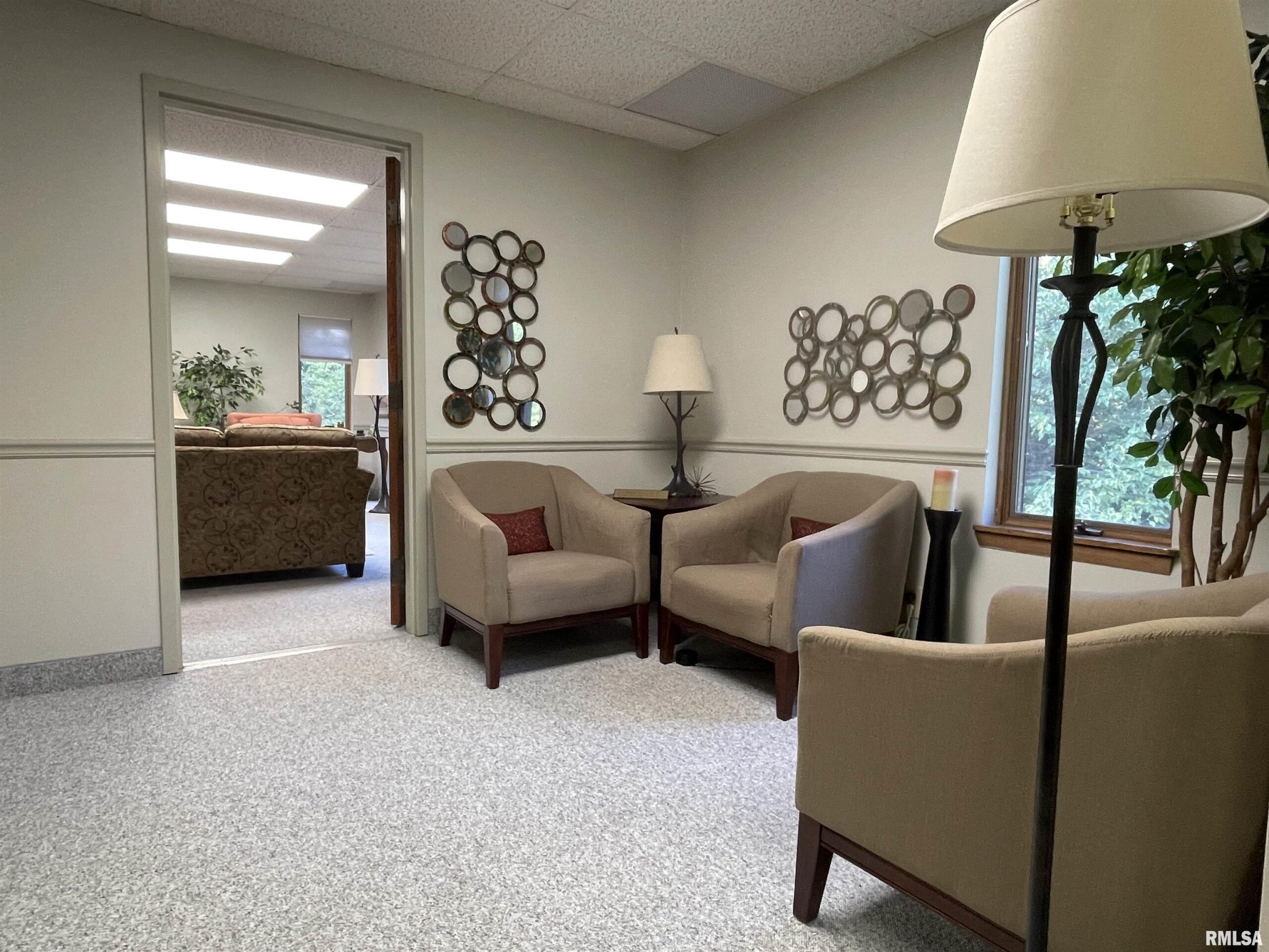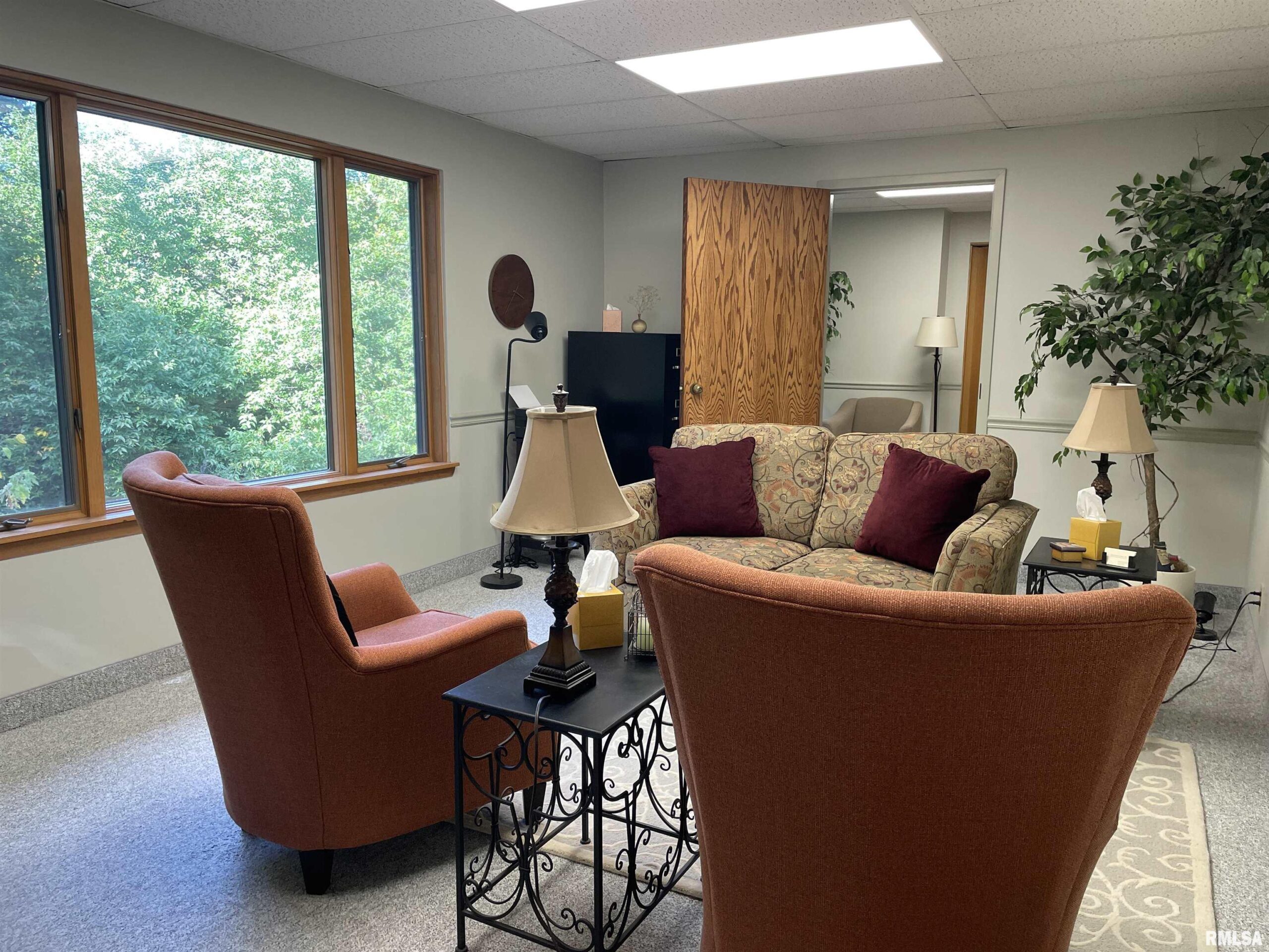 Need a private office and reception area for your business? Suite 103 has a spacious office with a large picture window facing the wooded rear area of the property. The office has a connected reception or 2nd office area with small kitchenette. Layout is perfect for extra privacy for your clients as they can come into the waiting area from one door and after their appointment they can exit directly to the hall from your office without needing to interact with your next appointment. Building has common area bathrooms and kitchenette. Gross rent of $750 plus electricity.