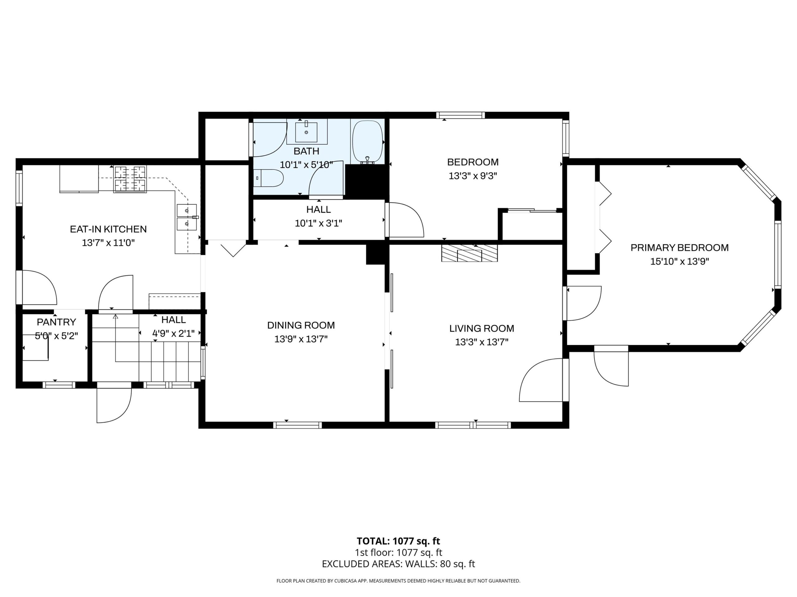 - Area: 1077 sq ft