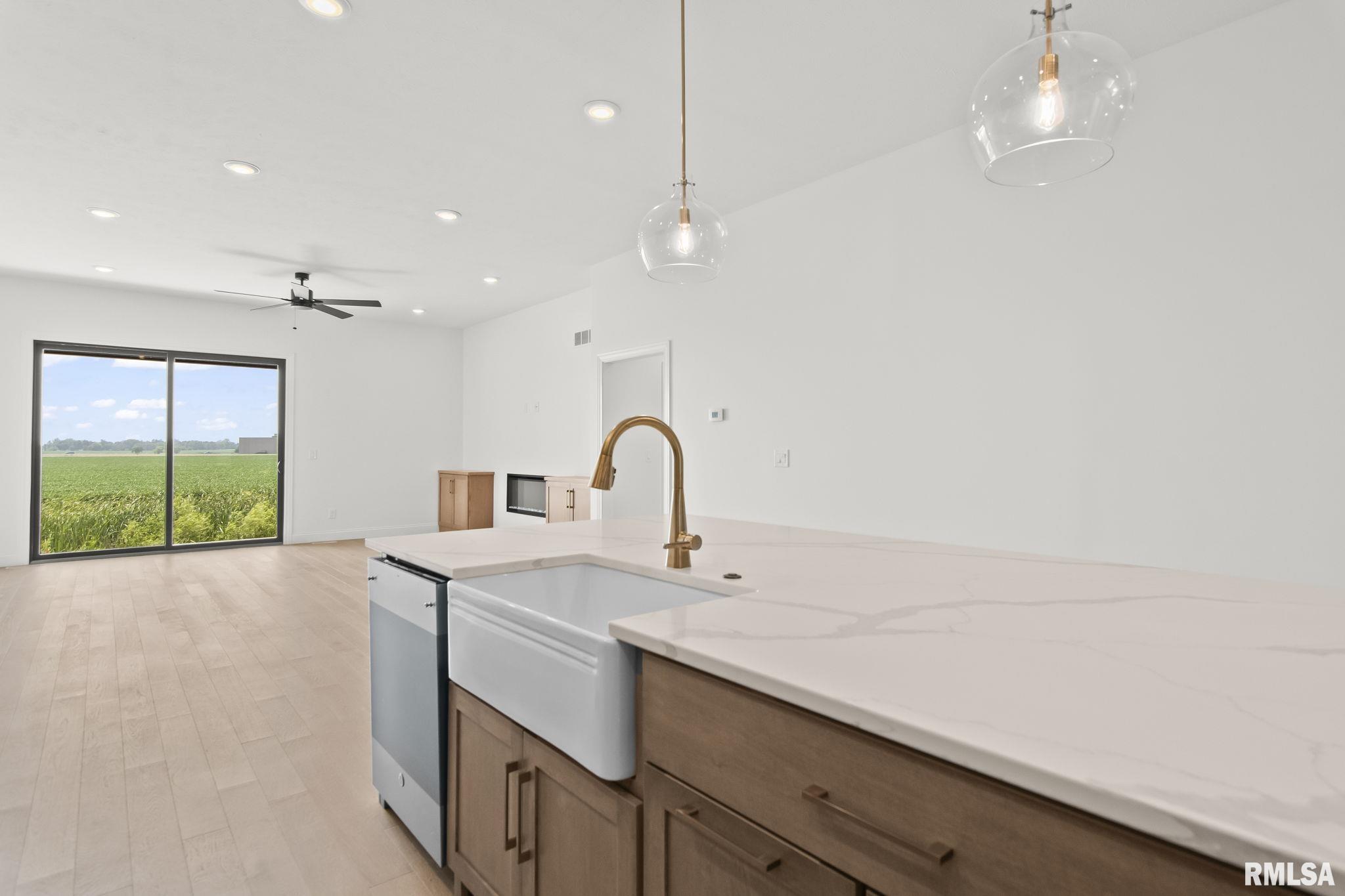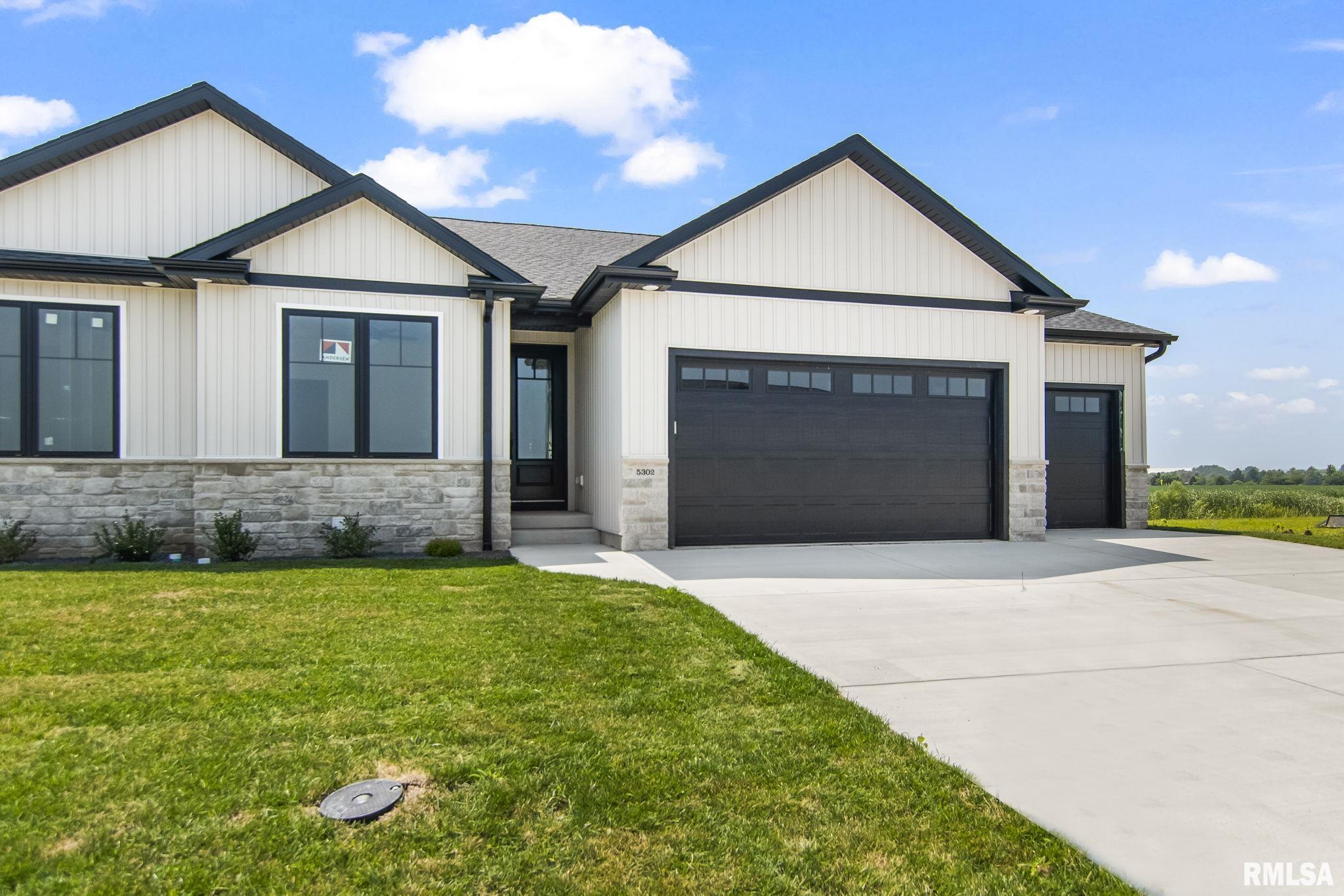 Prepare to be amazed by this stunning newly constructed duplex condo on Springfield's West Side, featuring 3 bedrooms and 2 full baths, crafted with quality by Montgomery Home Builders Inc. This home includes a spacious 3-car garage and showcases modern finishes throughout. Step inside to find wide plank white oak hardwood flooring that flows seamlessly across the main floor. The impressive kitchen features a large white quartz island with a breakfast bar, a farmhouse sink, gold-toned Delta plumbing fixtures, stainless steel appliances, and a corner pantry. The laundry room is equipped with a quartz top and storage cabinet for added convenience. The open-concept living room features an electric fireplace insert, flanked by storage cabinetry, and a large sliding door that opens to a covered patio with views of an open field. The oversized primary bedroom boasts a custom tile walk-in shower with dual shower heads, an upgraded freestanding tub, a custom walk-in closet, and a double vanity with quartz countertops. Two guest bedrooms are located on the main floor, with the front bedroom easily convertible to an office space. The lower level is unfinished, offering endless possibilities, complete with an egress window and plumbing for a full bath. Enjoy easy access to shopping, restaurants, the interstate, bike paths, and Centennial Park!