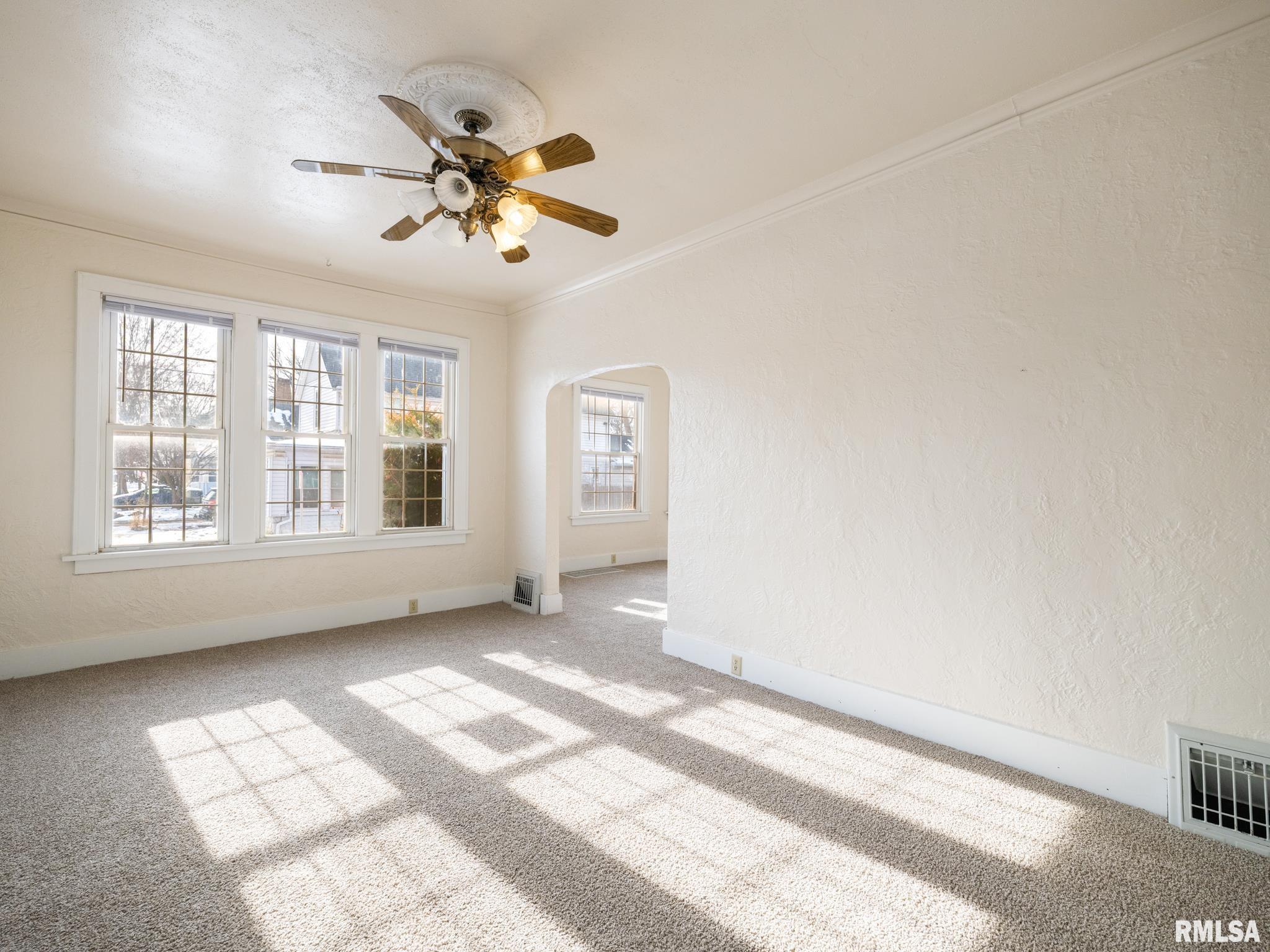 Brimming with charm, this 4-bedroom, 2-bath home on a corner lot is one you won’t want to miss! A welcoming front porch opens into spacious living areas with fresh flooring throughout, along with formal dining rooms highlighted by archways and stunning natural woodwork. The updated kitchen features beautiful laminate floors and a walk-in pantry, while the remodeled main-level bathroom blends modern comfort with classic style. You’ll find 2 bedrooms and a full bath on the main level, plus 2 additional bedrooms and a half bath upstairs. A full basement offers endless potential, and the 2-car carport adds everyday convenience. Recent updates include A/C and all new flooring in 2025, hot water heater in 2023, furnace in 2018, and electrical improvements.