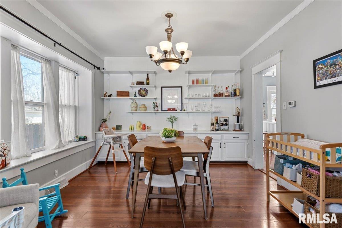 Coming Soon! Showings begin April 1st. Inviting 2-story home nestled in a quiet neighborhood just a short walk to Washington Park! Offering 4 bedrooms, 1.5 bathrooms and a classic, functional layout, this home is ready for its next chapter. The main level features laminate flooring throughout the living room, dining room, and kitchen (2010). The dining room showcases a wall of beautiful built-in shelves and drawers—perfect for both everyday living and entertaining. Upstairs you’ll find original hardwood floors in three bedrooms, along with a generously-sized full bath featuring a separate walk-in shower and tub. Major improvements already done include HVAC systems (2015), plus a new roof, gutters, and added blown-in insulation (2017) for enhanced efficiency. Step outside to enjoy the deck overlooking the backyard and the patio complete with a privacy fence along the east side—ideal for relaxing or hosting summer gatherings. The 2-car carport with an overhead door offers convenient alley access and extra storage. A wonderful opportunity in a sought-after location—close to the park, downtown and all that Springfield living has to offer!