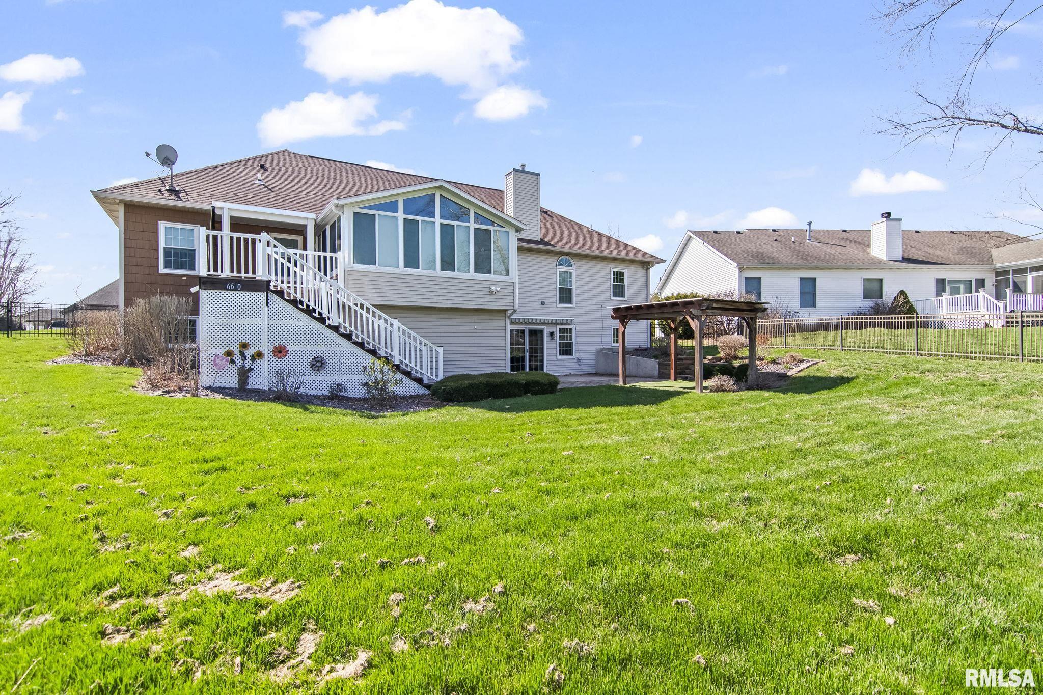Located in the highly sought-after Piper Glen community and perfectly positioned on the golf course, this impressive 4-bedroom, 3 full bath home offers exceptional comfort, style, and views. A standout feature is the newly custom-built four-season sunroom, filled with natural light and overlooking the 15th hole—creating a serene space to relax year-round. The home also includes a walk-out basement, spacious patio, and a fenced backyard, ideal for entertaining or enjoying peaceful outdoor living. Inside, you’ll find new LVP flooring, on the main level, and updated kitchen with solid surface counter tops, along with a generous family room and a large recreation room in the lower level. Major updates provide peace of mind, including a new furnace and air conditioner (2024), all-new triple-pane windows, an updated electrical panel, and modern appliances: refrigerator (2021), dishwasher, washer, and dryer (2020). Additional features include custom plantation shutters, a sprinkler system, updated outdoor lighting (2024), and ample garage space with a 3-car attached garage plus a separate golf cart garage. This home combines thoughtful upgrades, functional living space, and unbeatable golf course views—an exceptional opportunity in Piper Glen.