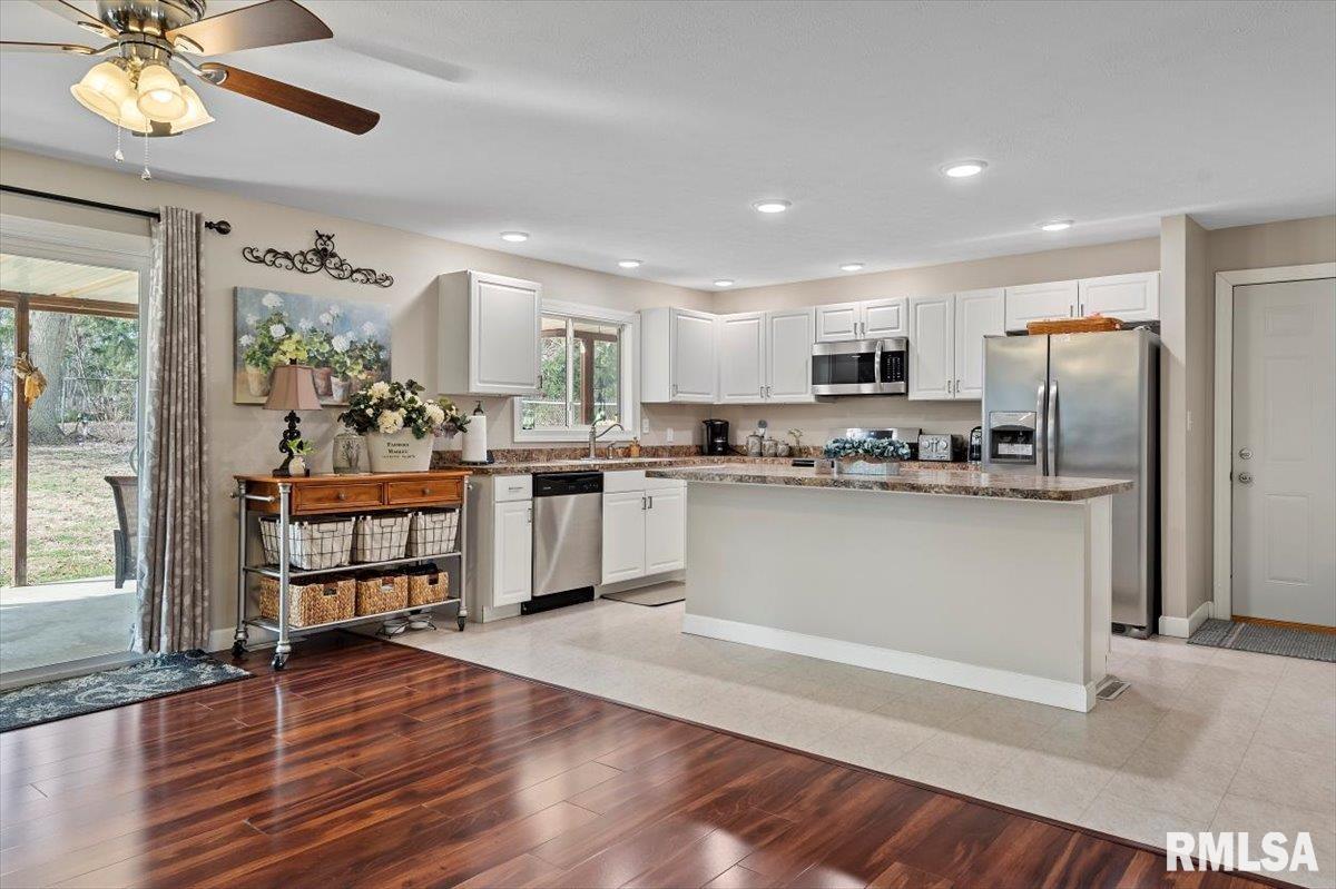 Welcome home to this bright, beautiful ranch home in a prime West Springfield location & Pleasant Plains Schools! This gem sits pretty in a country setting that feels rural & quiet yet it's just minutes from downtown or interstates. Inside, enjoy sprawling open-concept living with modern wood-like floors & natural light throughout. The huge eat-in kitchen features trendy white cabinetry, stainless steel appliances & an island w/bar seating. Flowing easily into the family room with a fireplace focal point, the formal dining space adds the perfect addition for hosting dinners & guests. A nearby laundry room is a true perk of the layout & directly from the kitchen you can step out to an expansive covered patio stretching across the full back of the home. The primary suite offers comfortable space with its own full bath, while the mostly finished basement adds even more flexibility with a second family/rec space, a 3rd full bath, bonus room for guests, plus a sink with cabinetry already installed, making a future kitchenette easy to finish if desired. So clearly well cared for with evident pride of ownership, this darling home sits on a sprawling 1.83-acre lot with mature trees, beautiful views, a private fenced backyard & a large firepit made for endless outdoor enjoyment. A must see for many reasons but the condition and location are certainly top of mind!
