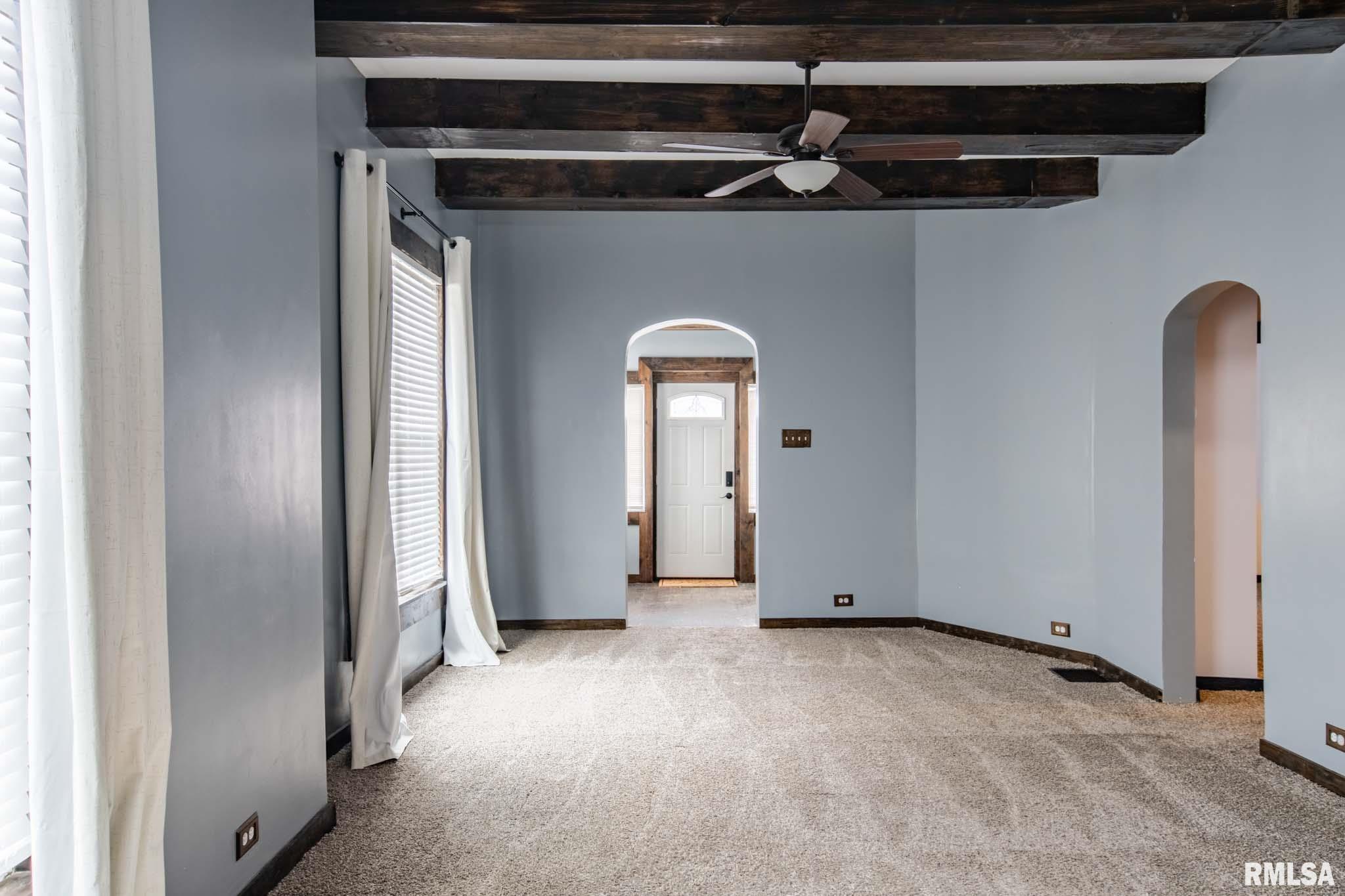 Take a look at this charming two-bedroom, one-bath home featuring a spacious two-car garage. Exposed wood beams add character to the ceiling, while two oversized windows bring in abundant natural light, creating a bright and inviting living area. The primary bedroom includes a walk-in closet, and the second bedroom offers the added convenience of a laundry chute. The home has been recently updated, including the installation of a new heating and cooling system in 2023 for added peace of mind. All kitchen appliances new in April 2025. The sump pump is approximately four years old, and the water heater is about seven years old. The unfinished basement provides additional storage space, including a separate storage room. Conveniently situated near Herrin High School and a nearby park.