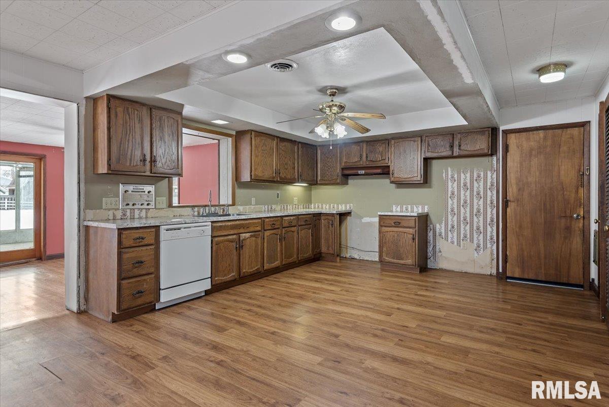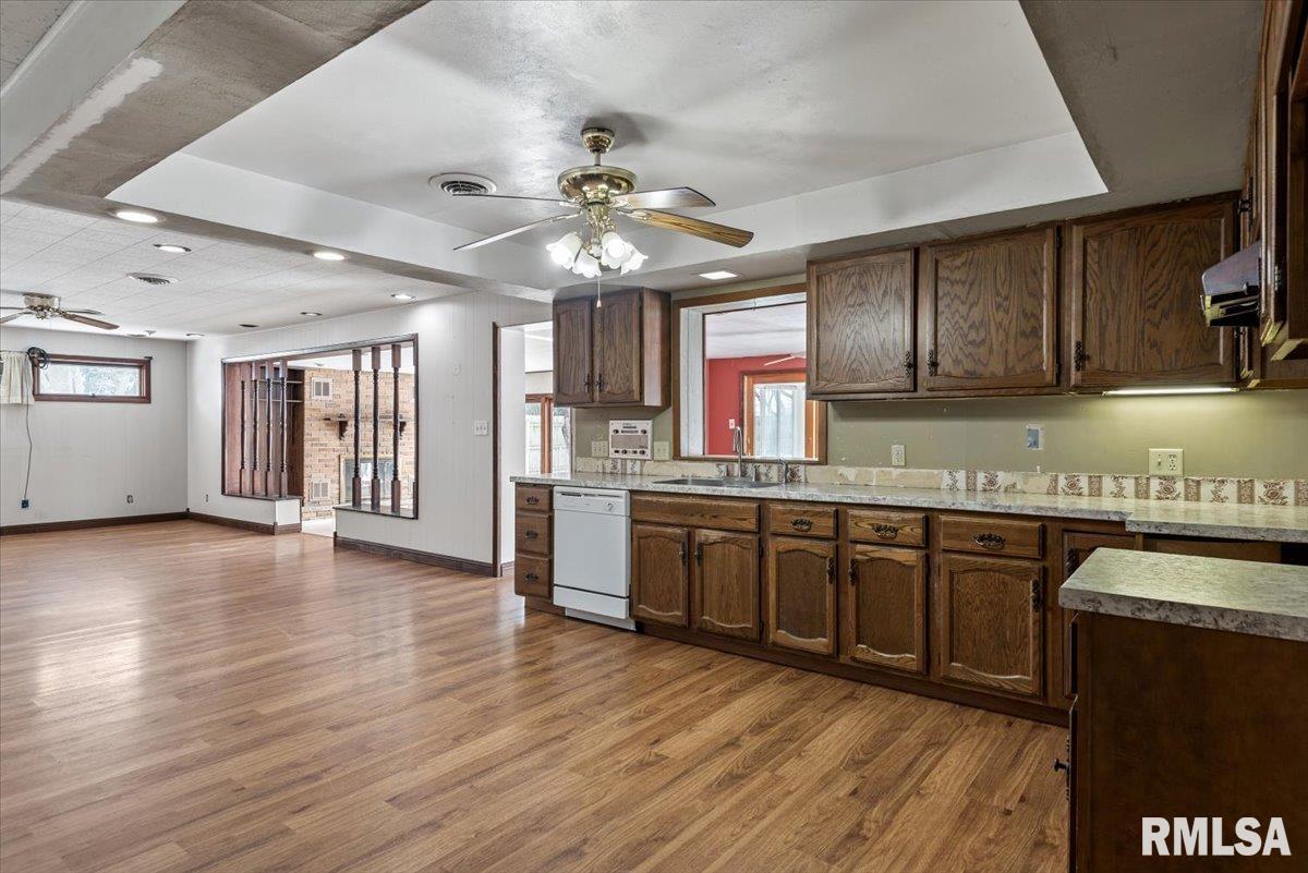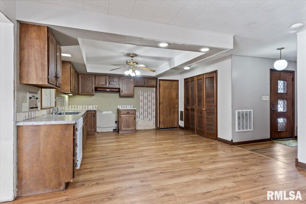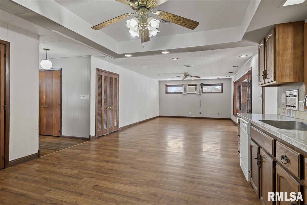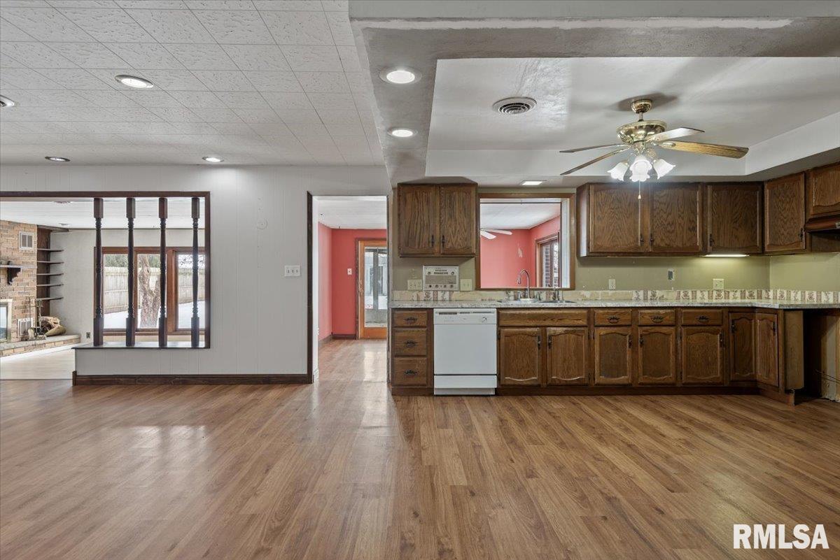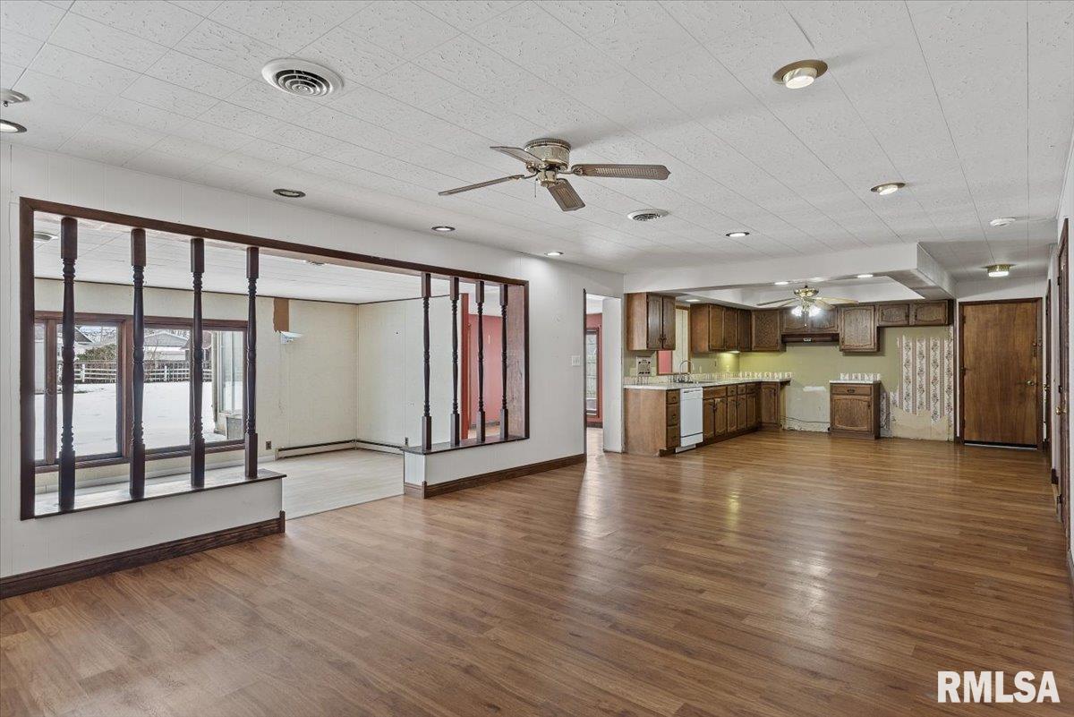 Excellent opportunity in New Berlin to own a spacious 4-bedroom ranch tucked away on a quiet street. This home offers great potential and needs some TLC—ranging from simple updates like paint and flooring to more extensive renovations such as the kitchen and bathrooms. Hardwood floors run through the hallway and bedrooms, while laminate flooring is found in the kitchen, family room, dining room, and living room. A 3-season room opens to a large, fully fenced backyard with a shed, providing plenty of space for outdoor enjoyment. Being sold "As Is"