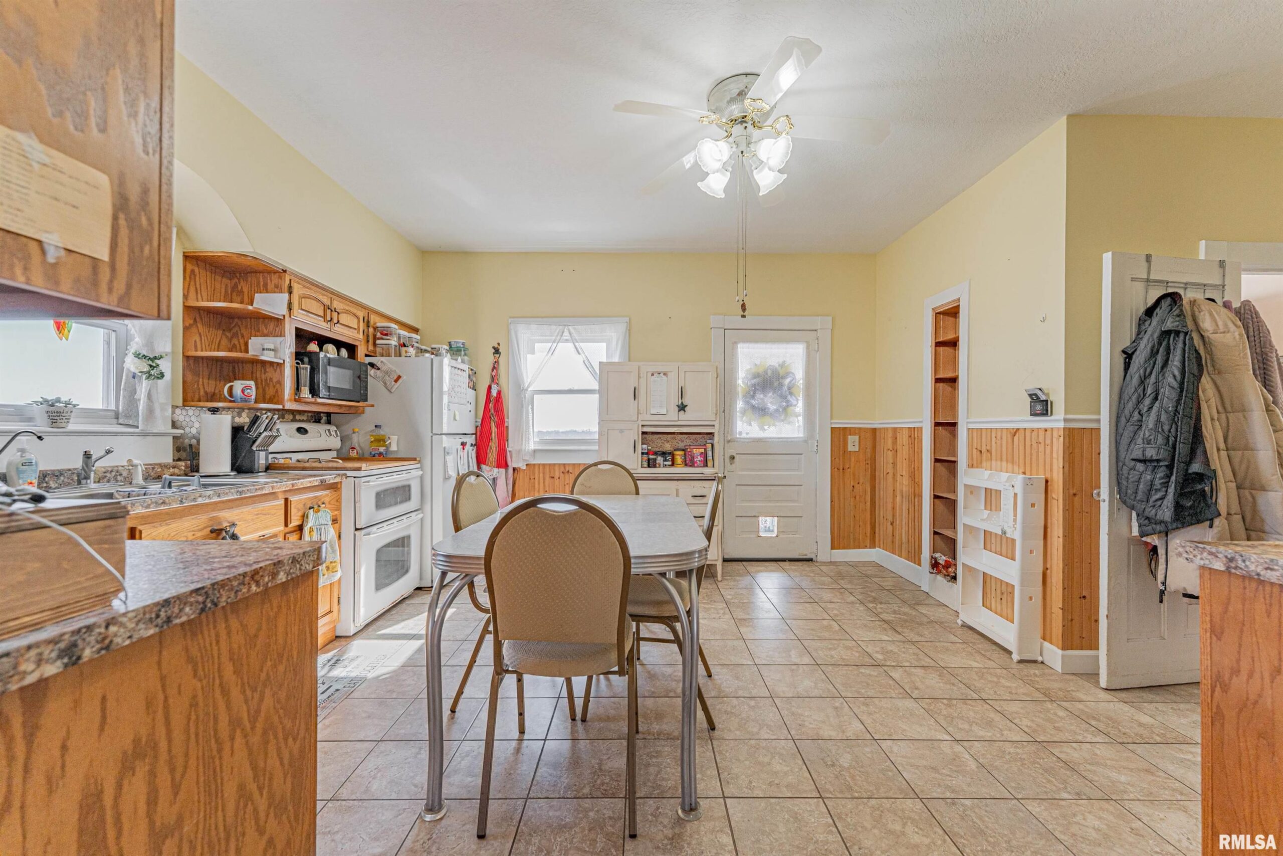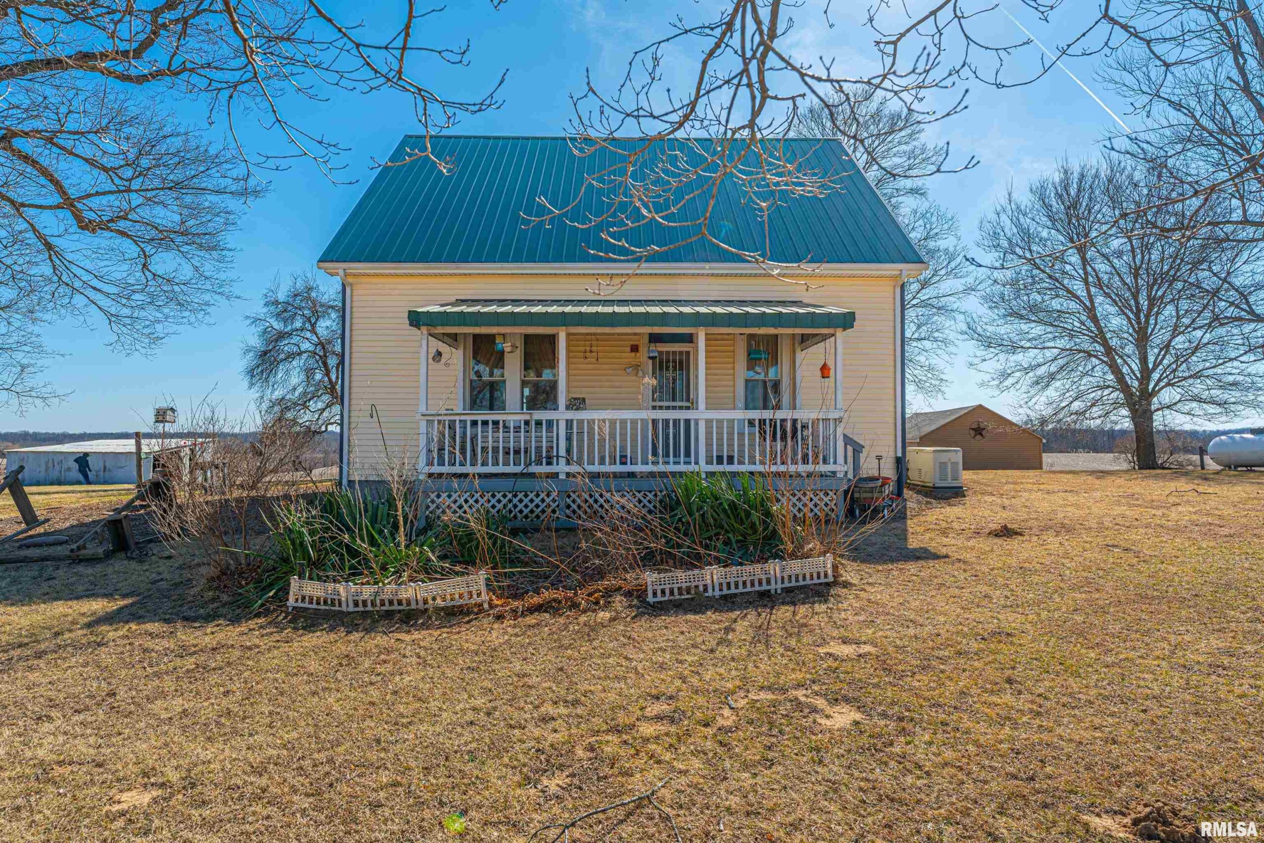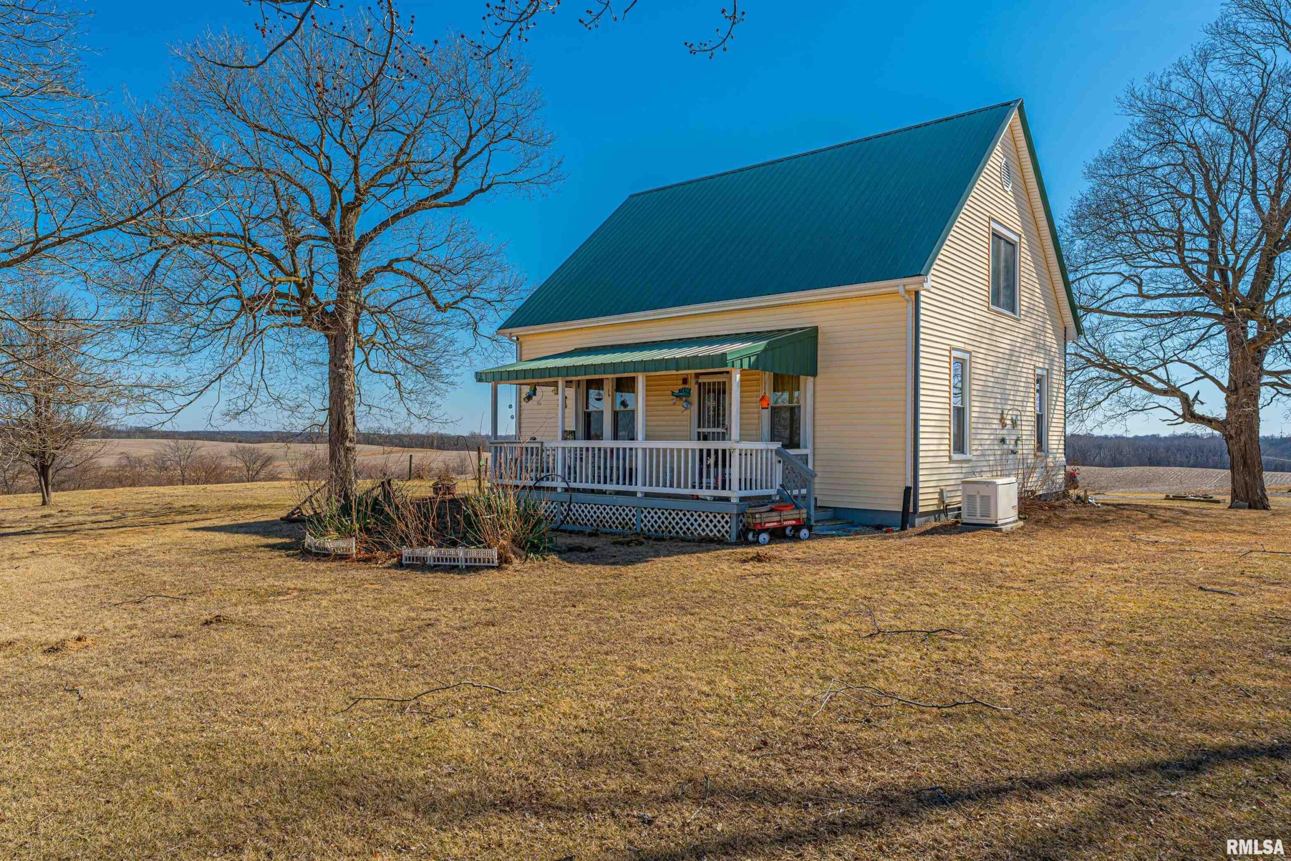 Situated atop a choice 1.00 acre parcel of ground in rural Clinton, this stately 4-bedroom, 2 full bath vinyl sided two story home has a lot to offer! Main floor of home boasts a bright and airy front facing living room with laminate flooring, equipped tiled eat-in kitchen, two bedrooms -- one with laundry facilities, full hall bath with a walk-in shower, and a large enclosed back porch that is flooded with natural light. Upstairs, you will find two additional bedrooms in addition to a full hall bath (can be accessed from either bedroom) along with fabulous attic storage space. The full deep usable basement is a pleasant surprise and boasts ample work/storage space along with mechanicals -- foundation has been replaced within the last 20 years per seller. Property also features a covered front porch, various vinyl replacement windows, metal roof, older two car detached garage in addition to an older shed type structure, all appliances to remain including washer and dryer, newer exterior vinyl siding as well as gutters (2023), as well as an updated furnace, central air conditioning unit, and water heater (2023). Private well/septic system on premises. Another added plus? A Generac generator! Choice rural DeWitt County living can be yours with this rural find! Enjoy views for miles and peace and quiet that can only be found in the country!