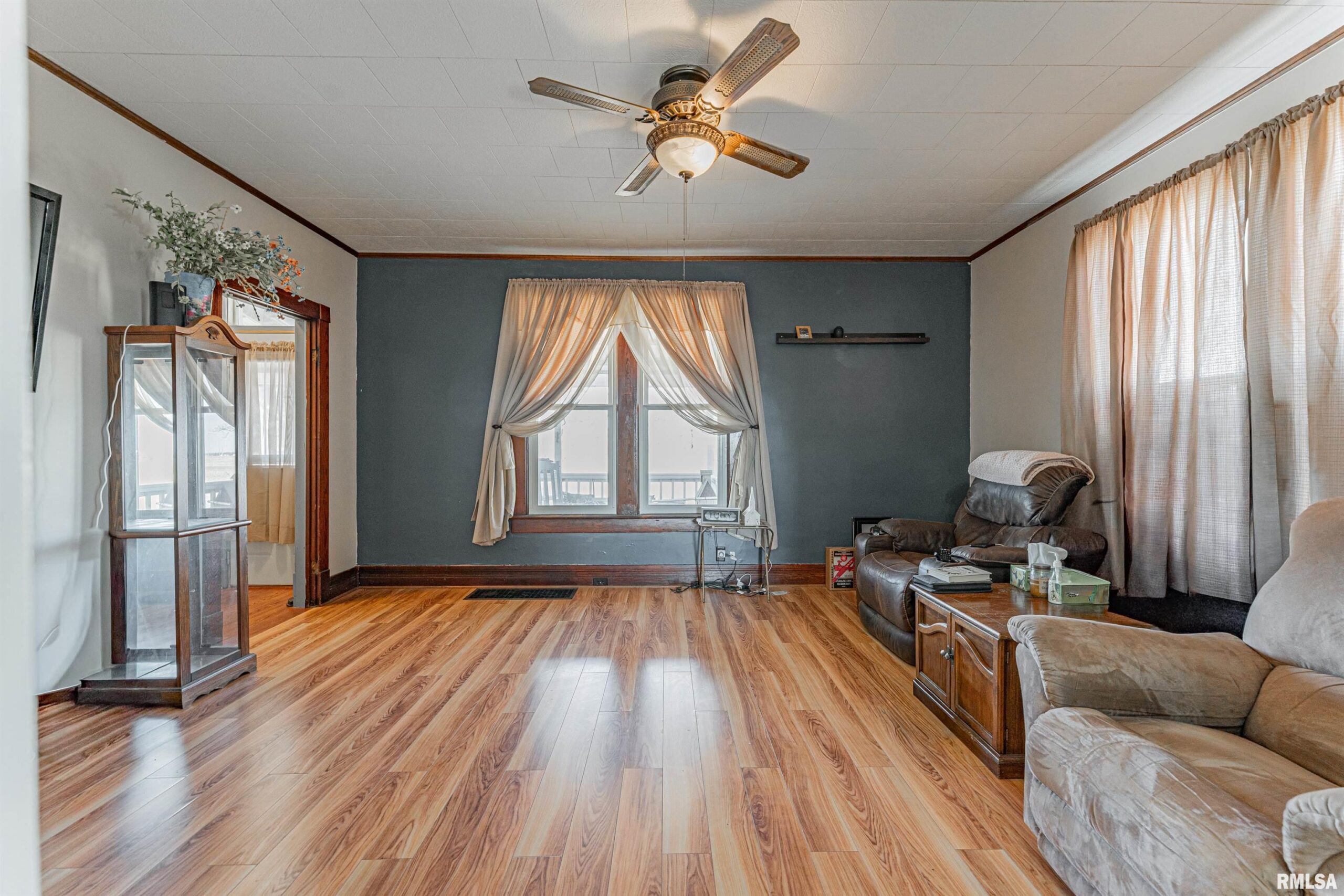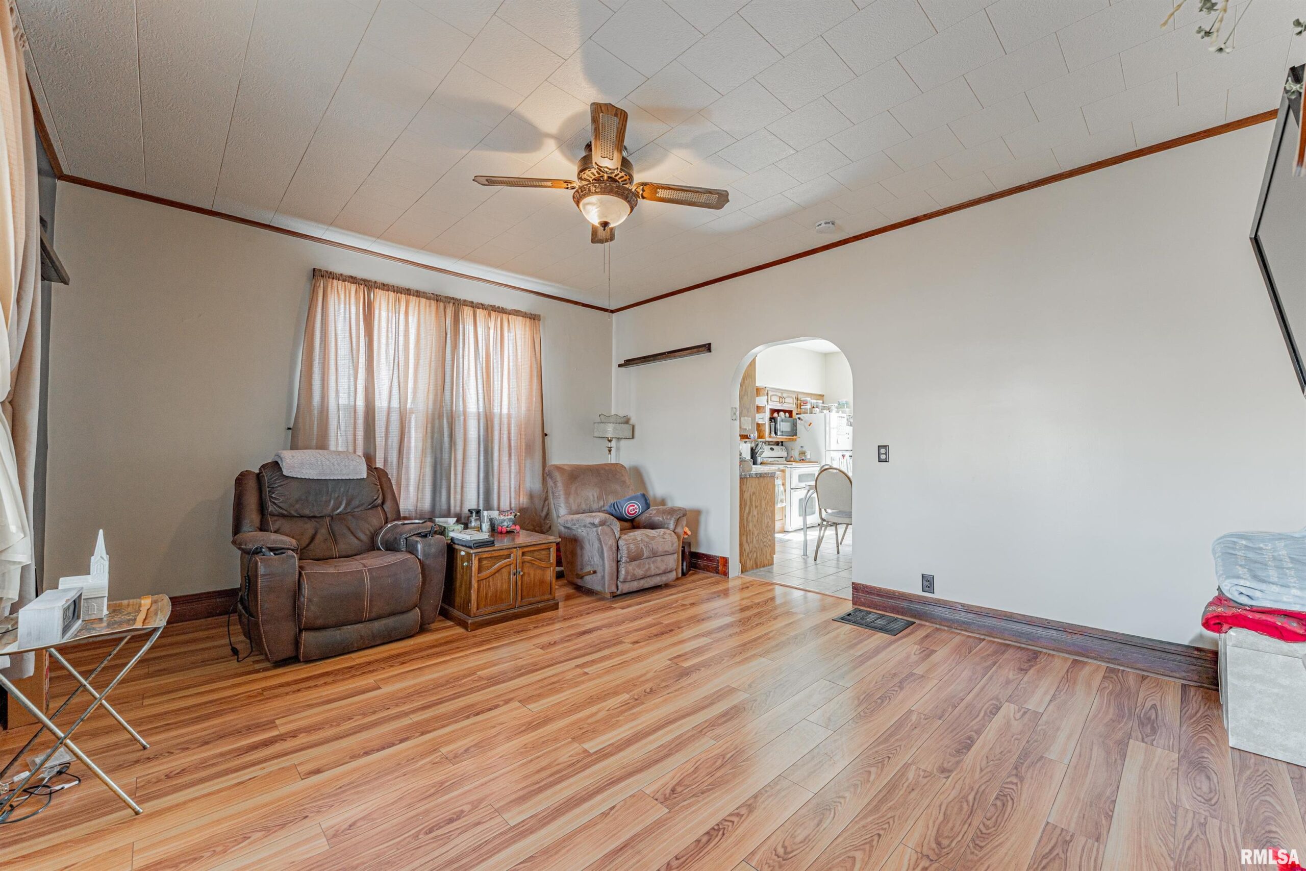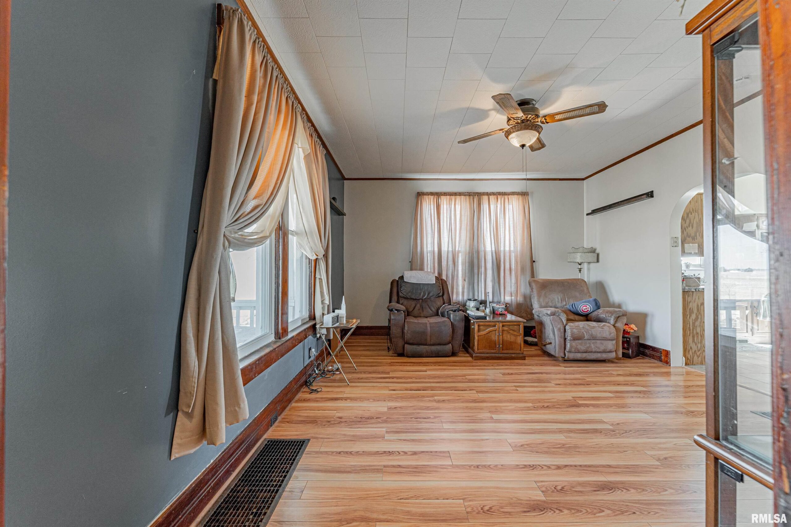 Situated atop a choice 1.00 acre parcel of ground in rural Clinton, this stately 4-bedroom, 2 full bath vinyl sided two story home has a lot to offer! Main floor of home boasts a bright and airy front facing living room with laminate flooring, equipped tiled eat-in kitchen, two bedrooms -- one with laundry facilities, full hall bath with a walk-in shower, and a large enclosed back porch that is flooded with natural light. Upstairs, you will find two additional bedrooms in addition to a full hall bath (can be accessed from either bedroom) along with fabulous attic storage space. The full deep usable basement is a pleasant surprise and boasts ample work/storage space along with mechanicals -- foundation has been replaced within the last 20 years per seller. Property also features a covered front porch, various vinyl replacement windows, metal roof, older two car detached garage in addition to an older shed type structure, all appliances to remain including washer and dryer, newer exterior vinyl siding as well as gutters (2023), as well as an updated furnace, central air conditioning unit, and water heater (2023). Private well/septic system on premises. Another added plus? A Generac generator! Choice rural DeWitt County living can be yours with this rural find! Enjoy views for miles and peace and quiet that can only be found in the country!