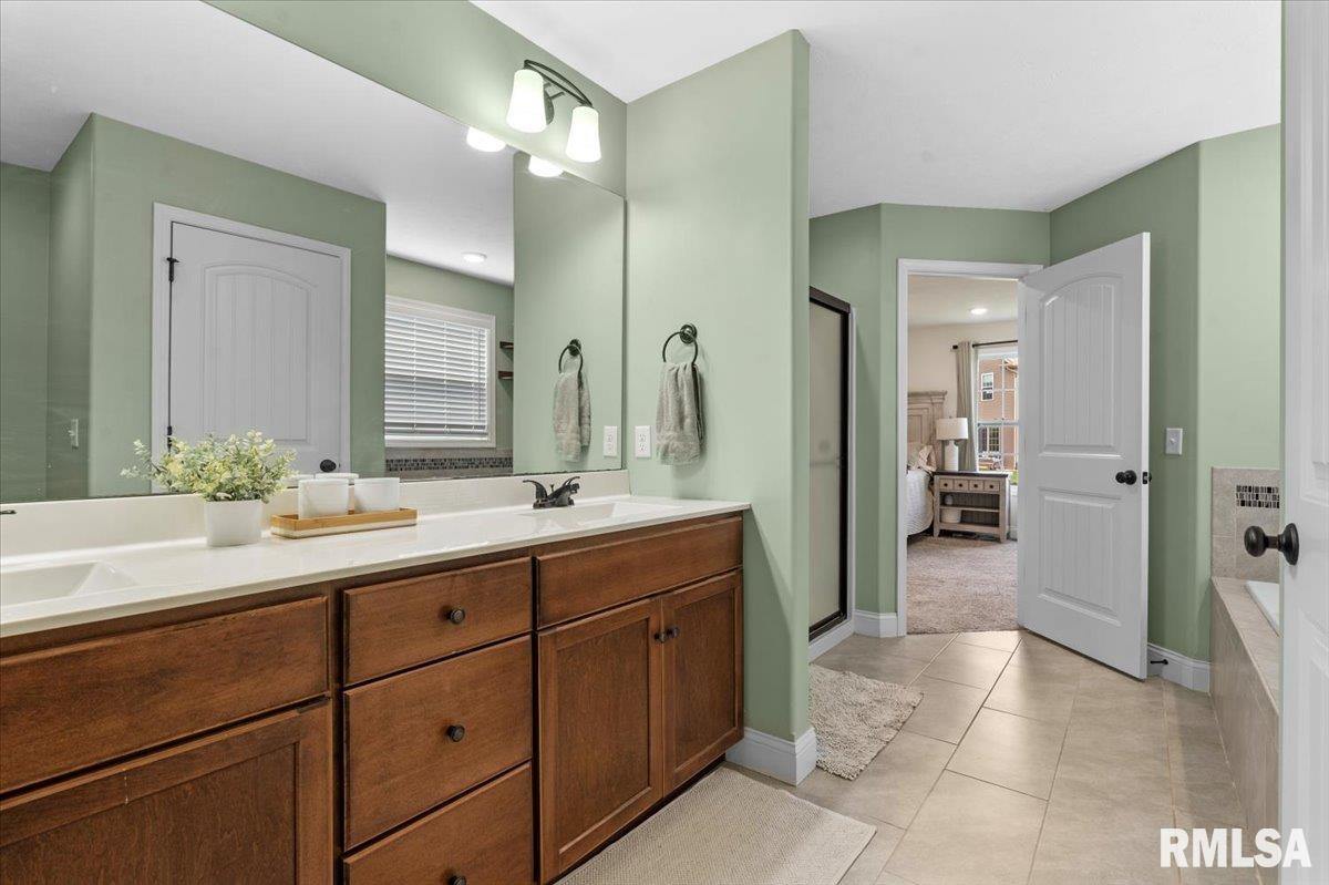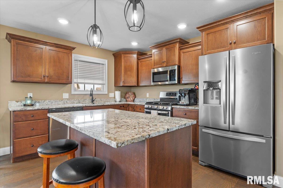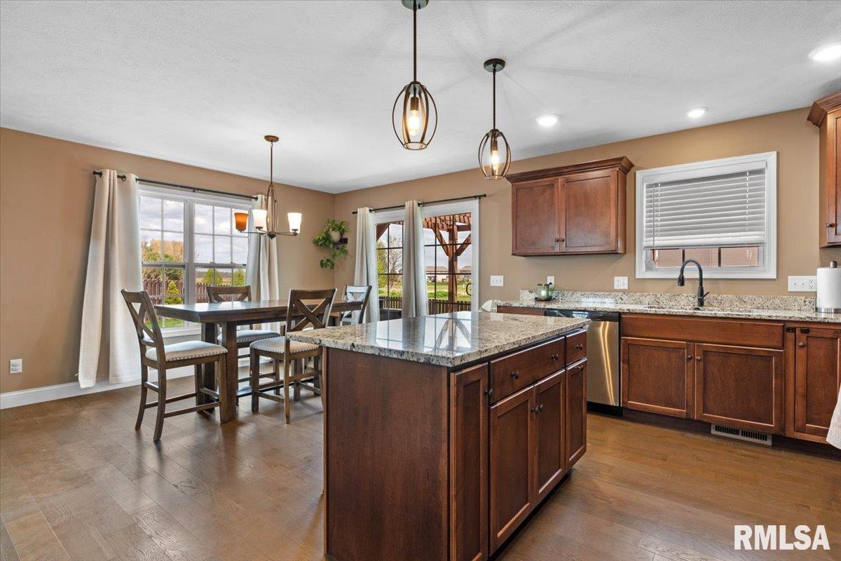 COMING SOON! - Stunning 5 Bedroom home w/ partially finished basement & main floor primary suite. This beautifully designed 5 bedroom, 3 1/2 bath home offering space, style & versatility for modern living. From the moment you enter, you'll appreciate the open layout & impressive features throughout. The main floor features a desirable primary suite, providing convenience & privacy along with a spacious great room featuring a soaring vaulted ceiling perfect for relaxing or entertaining. The stunning kitchen complete with a large granite island, ample cabinetry & plenty of workspace. Upstairs you'll find 3 generous sized bedrooms & a full bath w/double bowl vanity. The finished basement expands the living space, featuring a family room, stylish bar area, full bath & the 5th bedroom w/egress window + add'l room for storage.