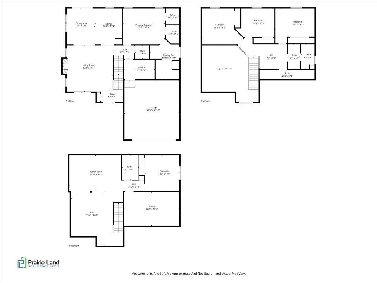 Room type Area Level Length Width Main Level 1434 Upper Level 1016 Lower Level Basement 1040 Additional Level Bedroom 1 Main 15.6 13.4 Bedroom 2 Upper 12.8 12.11 Bedroom 3 Upper 10.8 14.8 Bedroom 4 Upper 15.2 13.4 Bedroom 5 Basement 12.8 13.4 Living Room Main 17.2 17.1 Family Room Basement 19.11 13.4 Dining Room Main 10.5 13.3 Kitchen Main 10.2 13.4 Laundry Main 11.4 7.3 Additional Room Basement 19.4 20.3 Additional Room 2 Basement 20.6 12.6 Third Floor