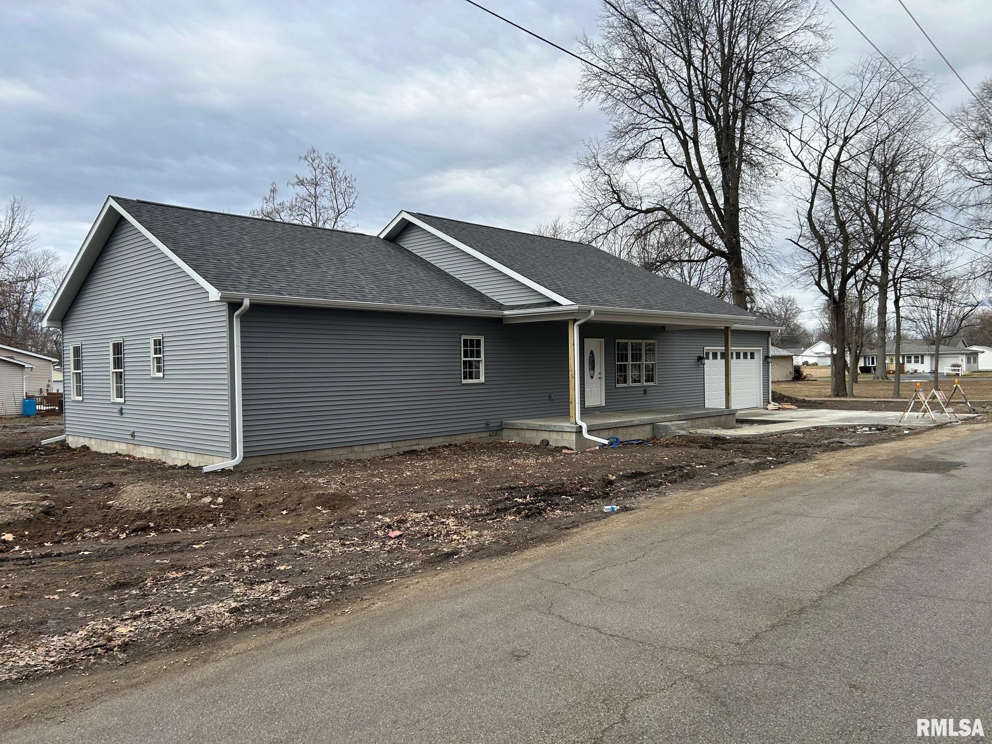 New Construction, Drywall Just hung. concrete patio in back on Corner lot that is large double lot 121 x 142. Large master bedroom suite Cathedral Ceiling in Kitchen and great room. lock this home in and get your own finishing touches on the home.