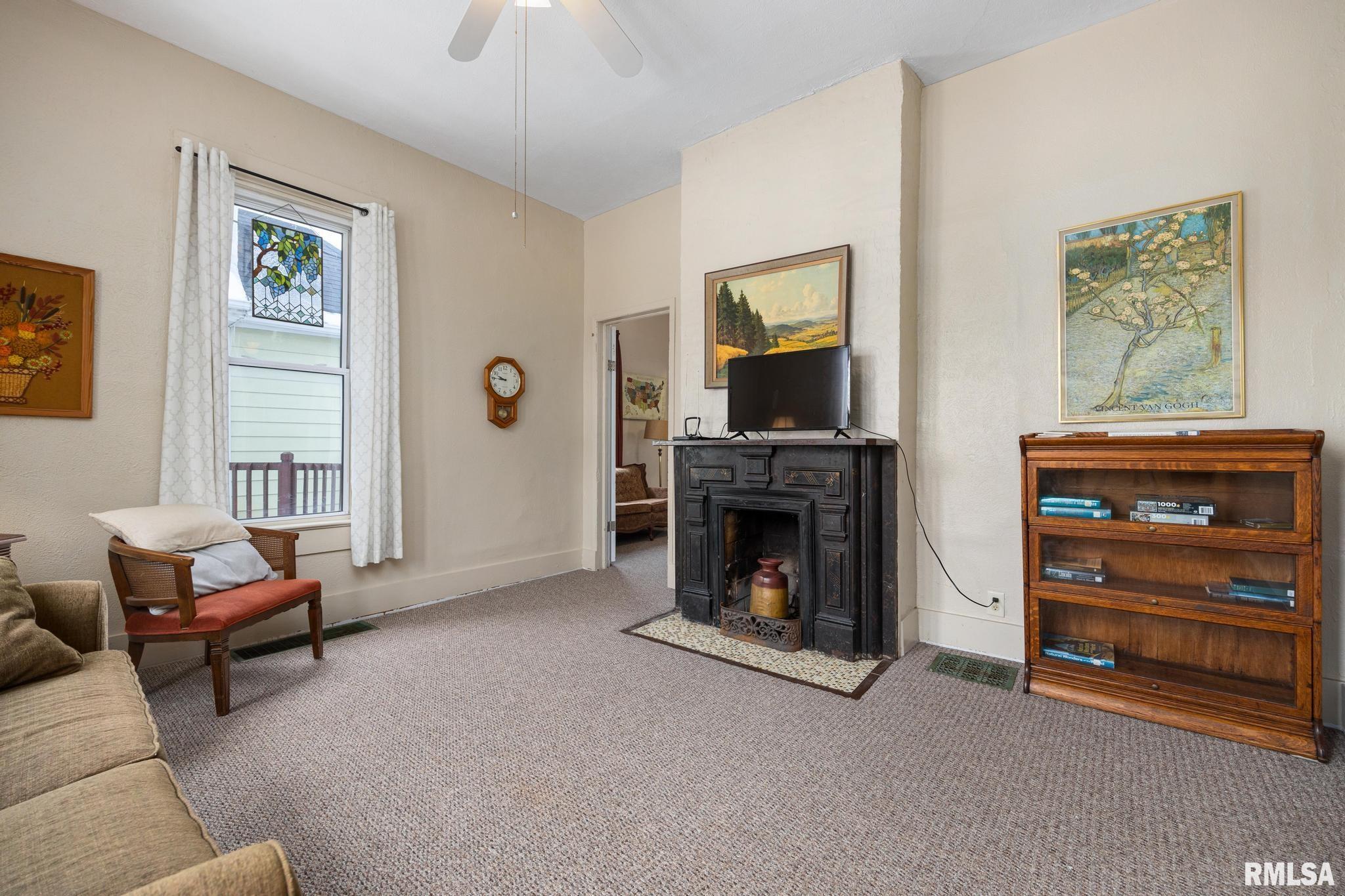 The Wiley House, circa 1888, has been noted by the Peoria Historical Society for its place in the region's history. The house was built for a local musician who gained fame for performing for Queen Victoria. Features some original rosette trimmed doorways, original fireplaces and wood floors. This home has been carefully updated to preserve character along side modern amenities. Recent renovations include the all new bathroom, updated kitchen, porch, carpeting in some rooms, refinished wood floors in the kitchen and dining room, new paint throughout, newer water heater and heating unit. Low maintenance and move-in ready, this 2 bedroom home with fenced yard is conveniently located near the medical district, Downtown Peoria and the interstate in the historic Glen Oak - Flanagan neighborhood. This home has been used as a rental property and would make a great traveling nurse/Dr rental within a block of OSF. New refrigerator 2024. New back gate 2024. New Garage door fall 2025. Attic insulated 2023. Terminix contract inside and out last 3 years. Keurig 2024. Home professionally cleaned between tenants. Property sold AS-IS, NO INSPECTIONS. Selling FP's AS-IS. Seller will leave all furnishings/kitchen utensils with acceptable offer.