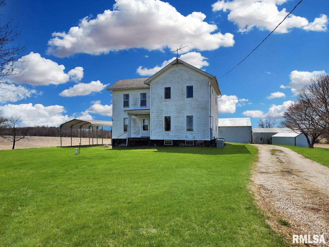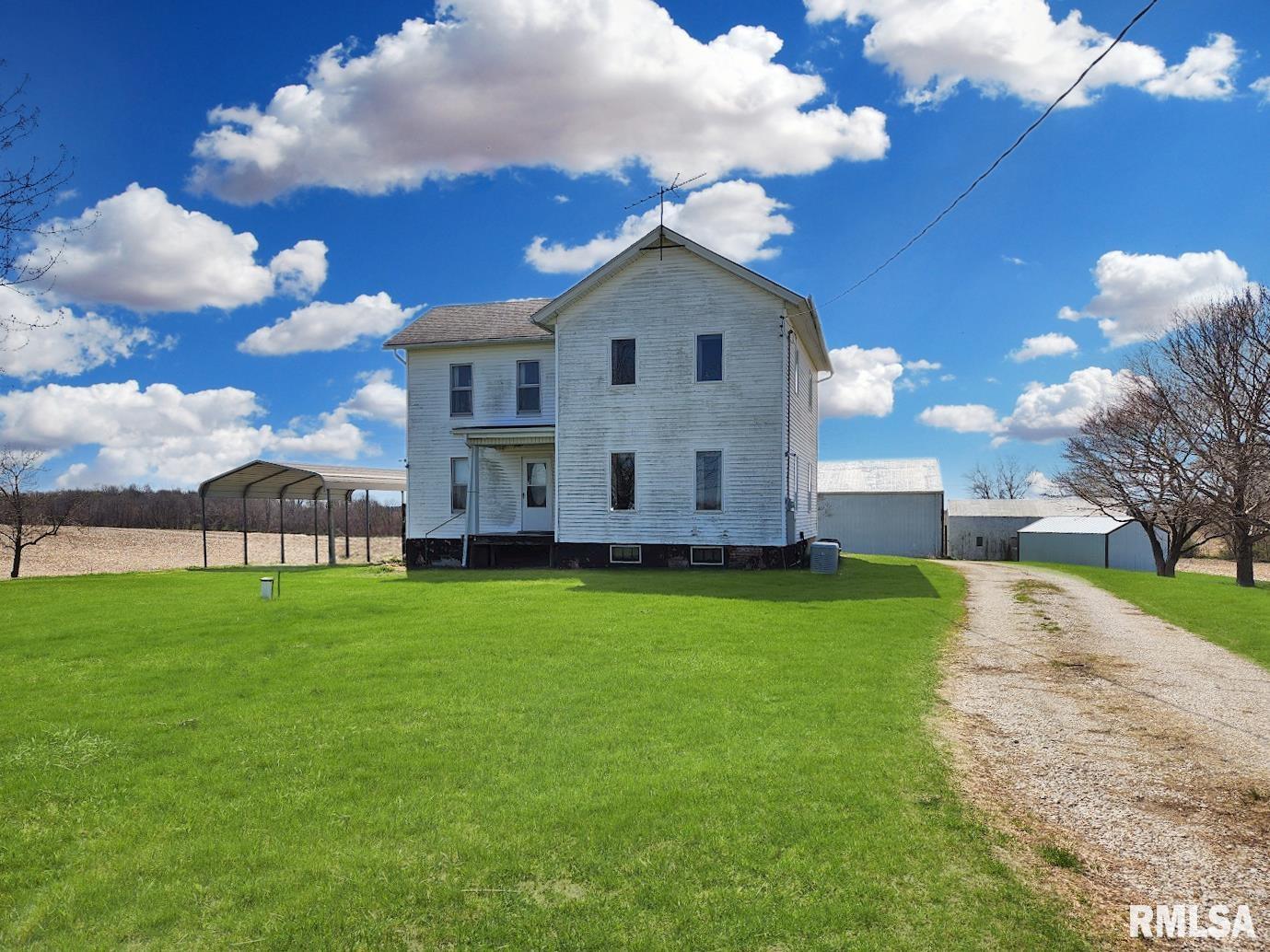 Escape to peaceful country living with this rare opportunity to own a private home tucked away on a quiet dead-end road. Situated on 1.6 acres and surrounded by open fields, this property offers the space, privacy, and versatility you’ve been searching for. Inside, the home features a spacious kitchen complete with a tiled backsplash, flowing seamlessly into the main floor living and dining area with hard wood flooring—perfect for everyday living or entertaining. There is also a den/office or you could create a main floor bedroom. The main floor also includes a bathroom with a newer walk-in shower for added convenience. Upstairs, you’ll find three bedrooms, including a generous primary bedroom with an additional sitting area that can easily be transformed into a home office, walk in closet, or hobby space. The basement provides ample storage, while outside, the property truly shines with multiple outbuildings, including a massive 72x44 shed, a detached garage, and an older corn crib—ideal for storage, workshop use, or future projects. A generator is also included, offering peace of mind year-round. Some updated windows. With no close neighbors and endless potential, this property is a unique find that combines rural charm with practical features. Opportunities like this don’t come around often—don’t miss your chance to make it your own.