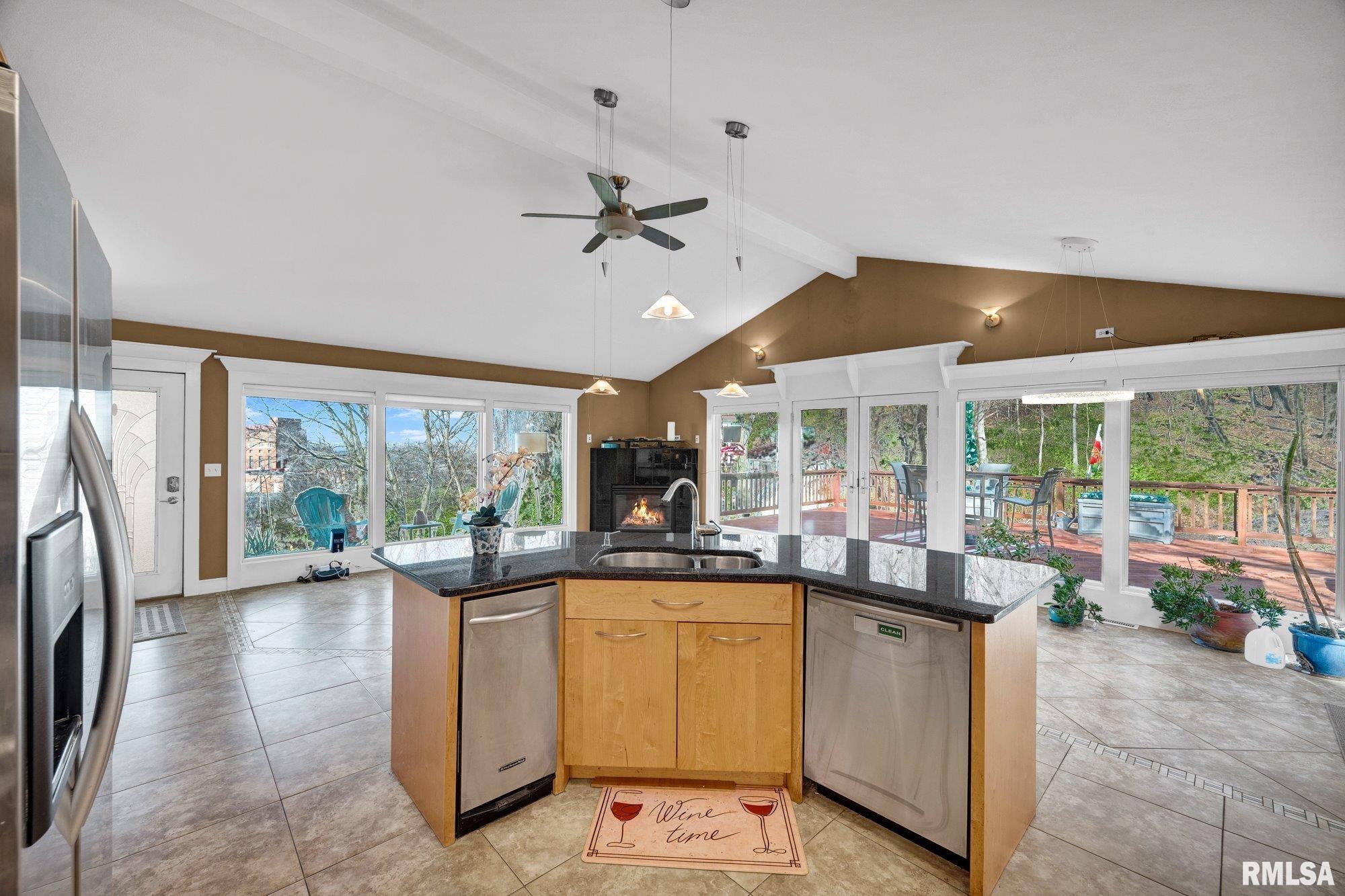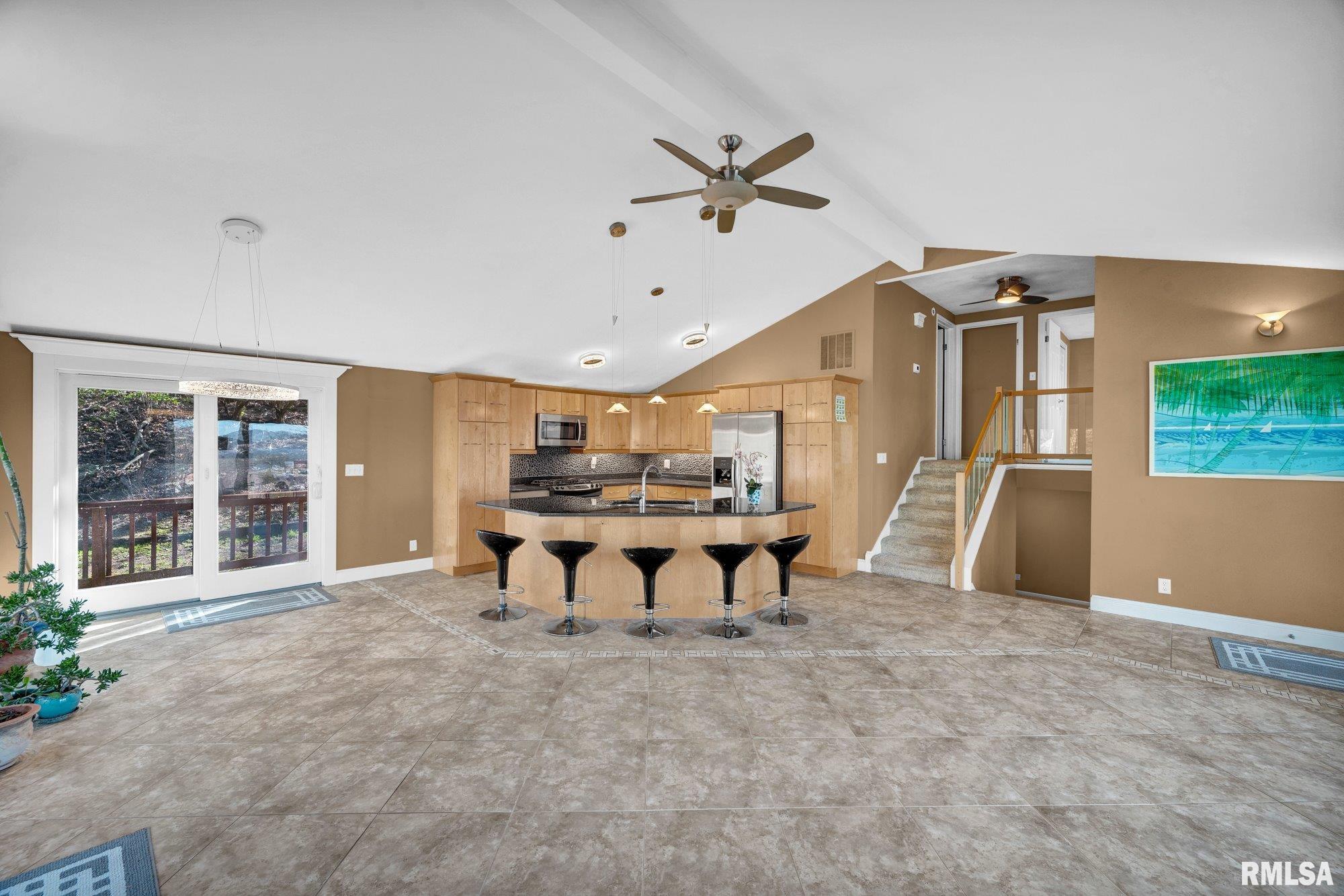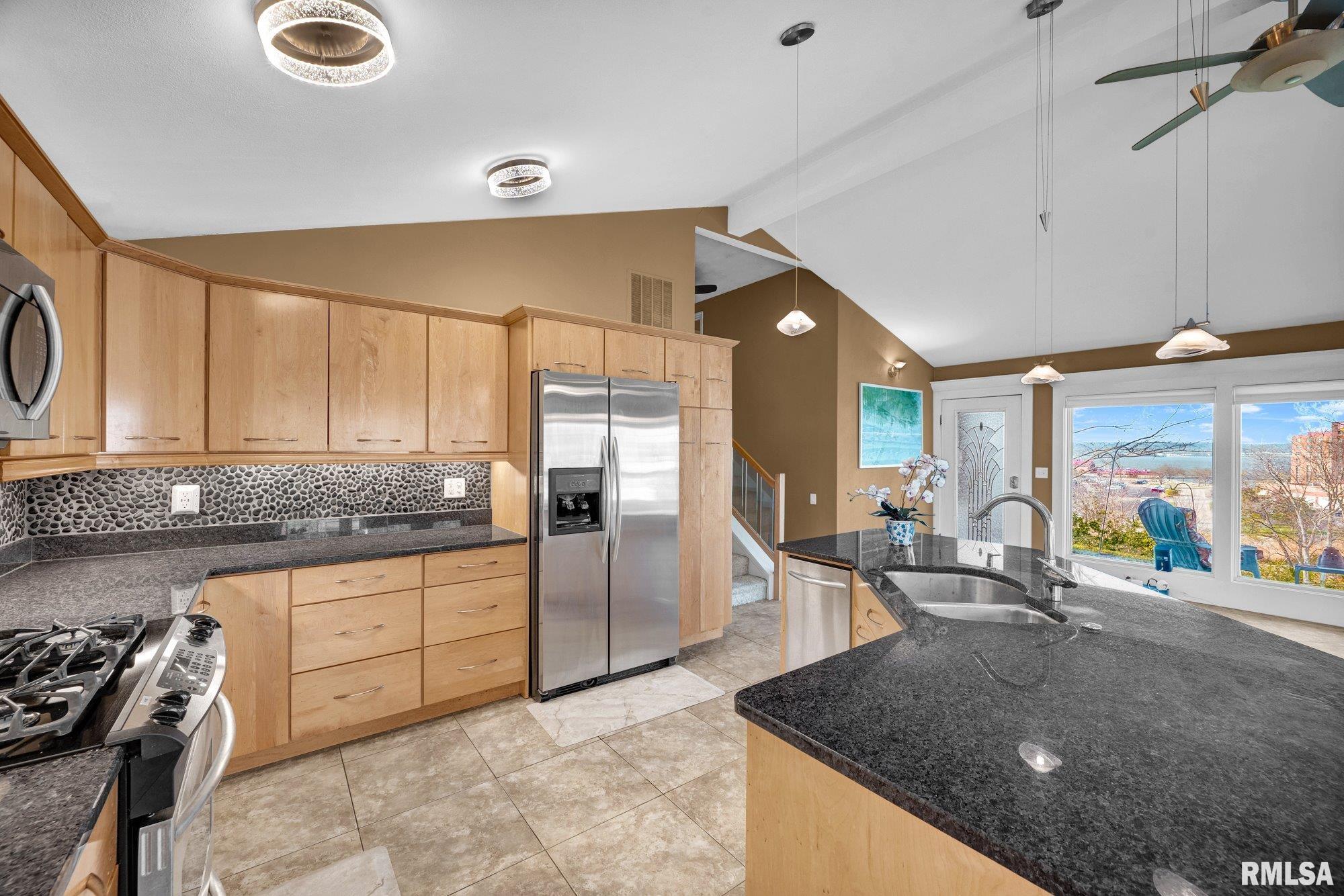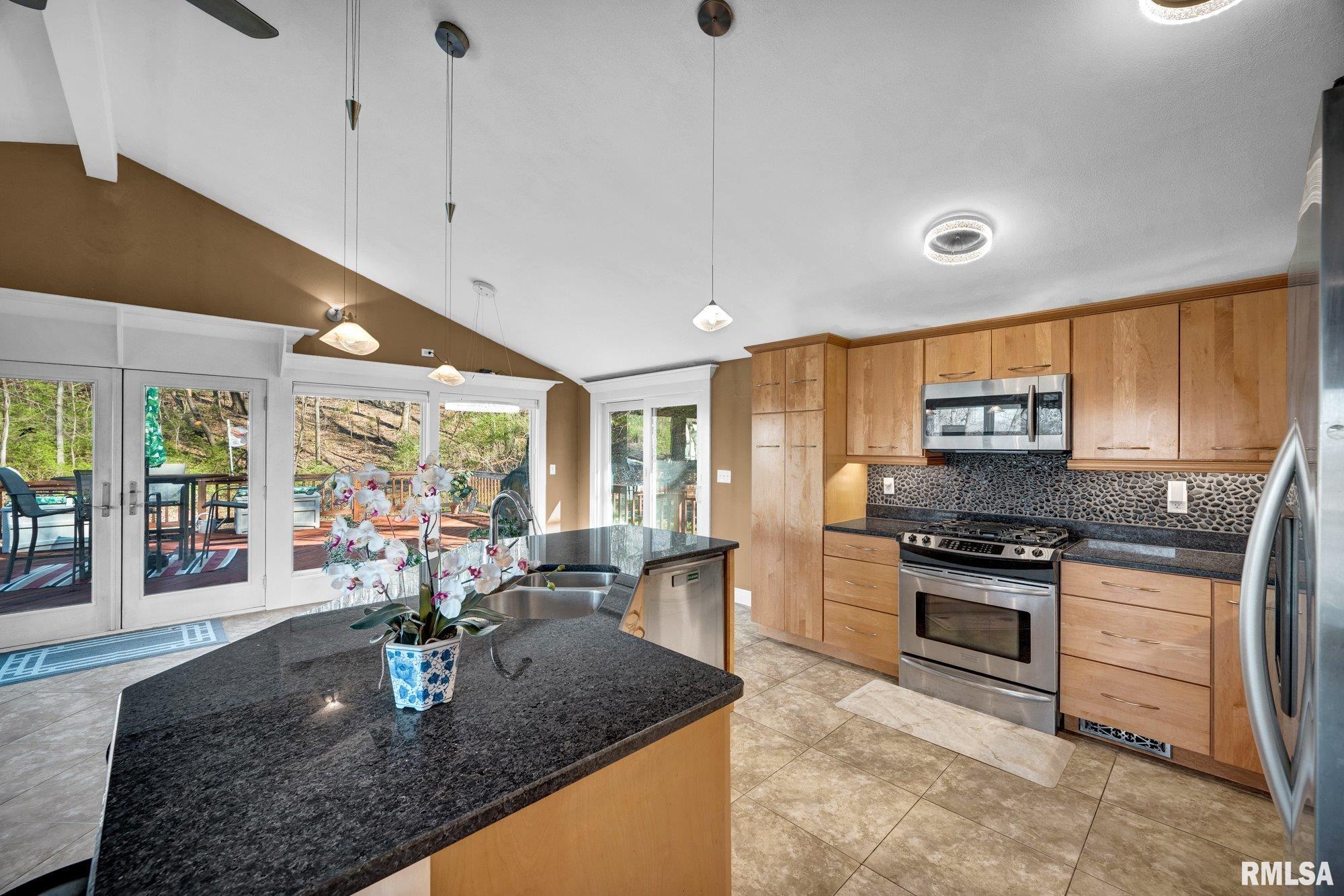 Welcome to this beautiful 3-bedroom, 2.5-bath in-level home set along the bluff in East Peoria, offering a private, wooded setting with river views of the Illinois River. Step into the great room where an open floor plan seamlessly connects the kitchen, dining, and living areas—perfect for everyday living and entertaining. A gas fireplace adds warmth and charm, while the kitchen features solid surface countertops, beautiful cabinetry, and a full appliance package including dishwasher, range/oven, refrigerator, microwave, and trash compactor. Upstairs, you’ll find the spacious primary suite with a private full bath, along with two additional bedrooms and a full guest bath. The lower level offers a large family room, half bath, and a generous laundry room complete with washer and dryer. Outdoor living is a highlight, featuring a 20x30 freshly stained deck overlooking a wooded backdrop with river views, while the living room also enjoys that same natural setting. An attached 2-car garage completes the package. With its peaceful bluff setting, functional layout, and inviting spaces, this home offers a great balance of privacy, scenery, and everyday convenience.