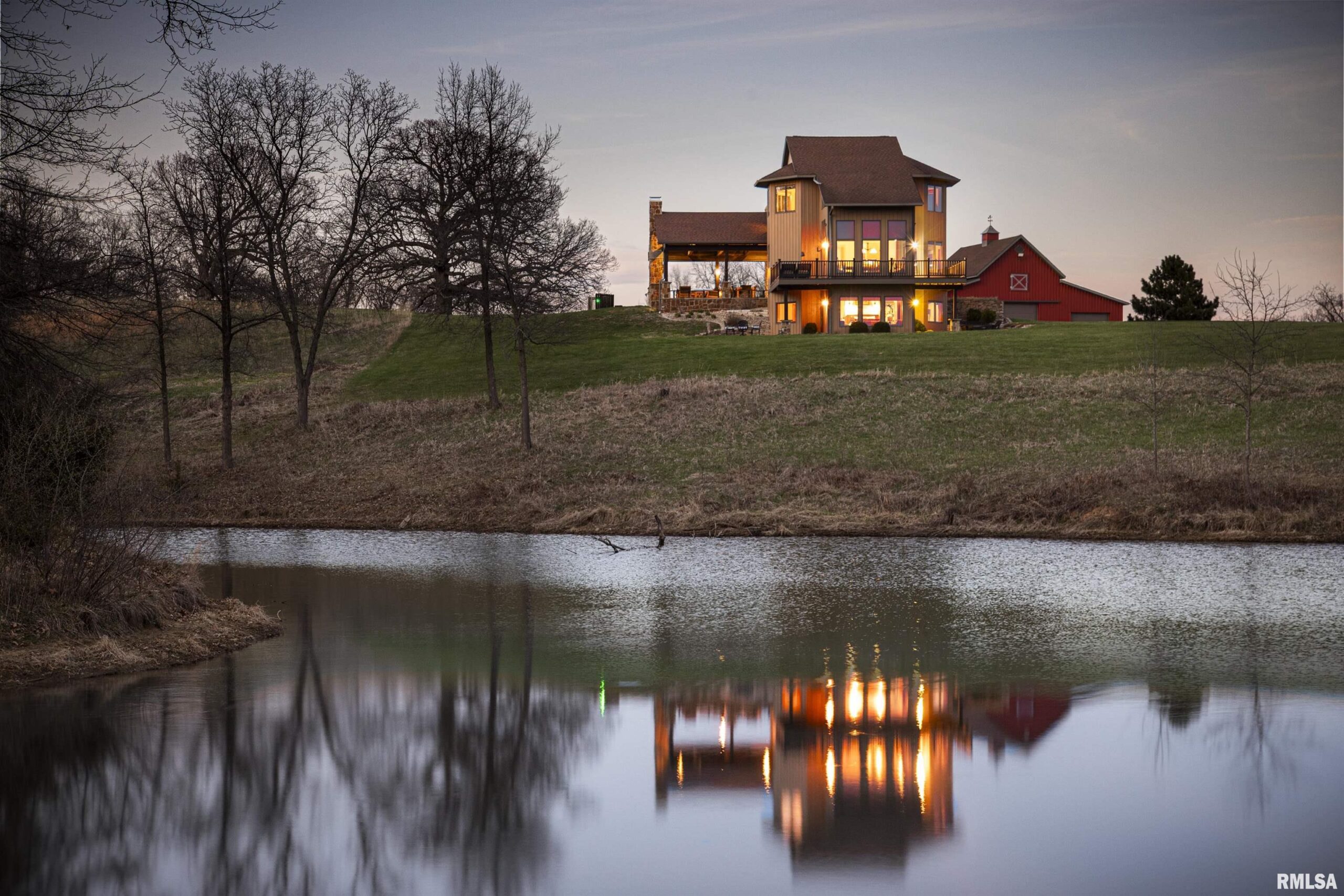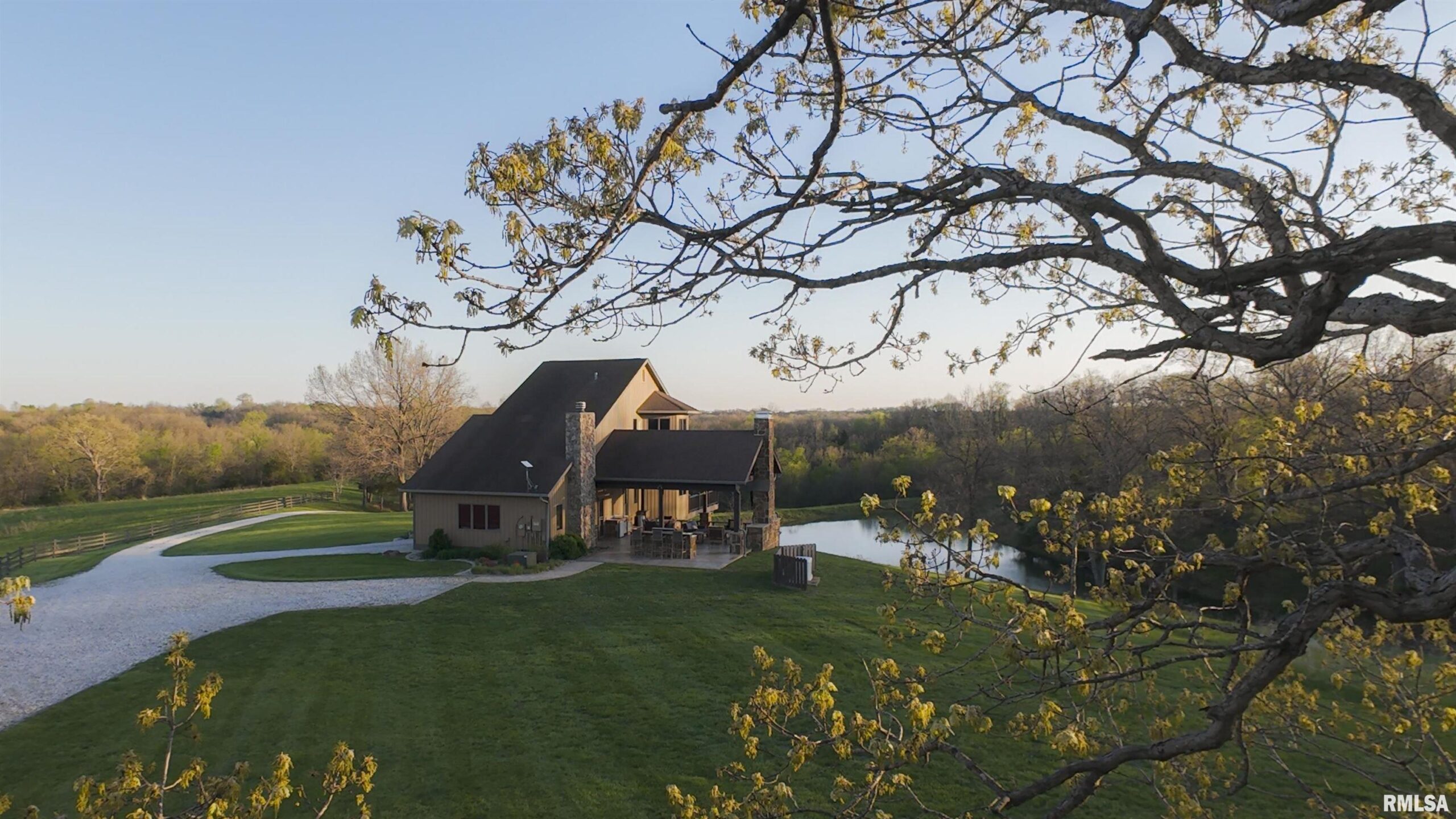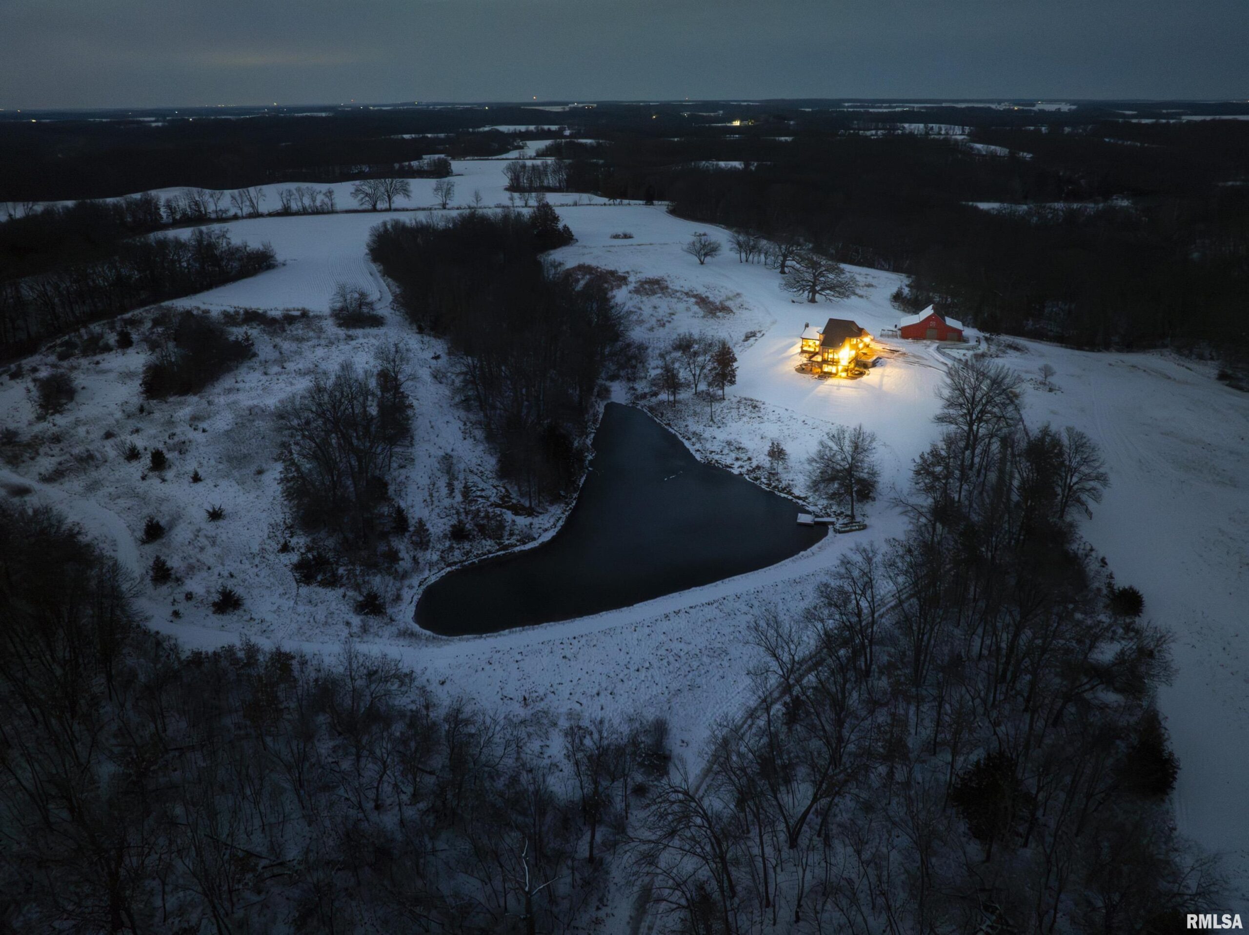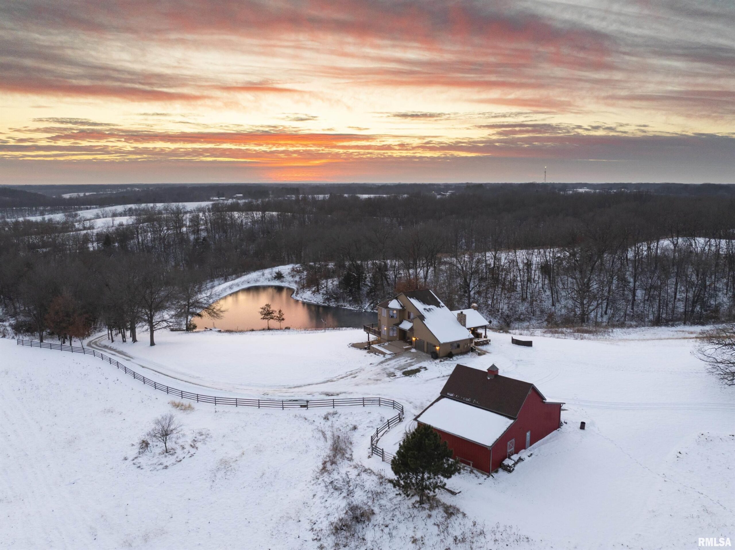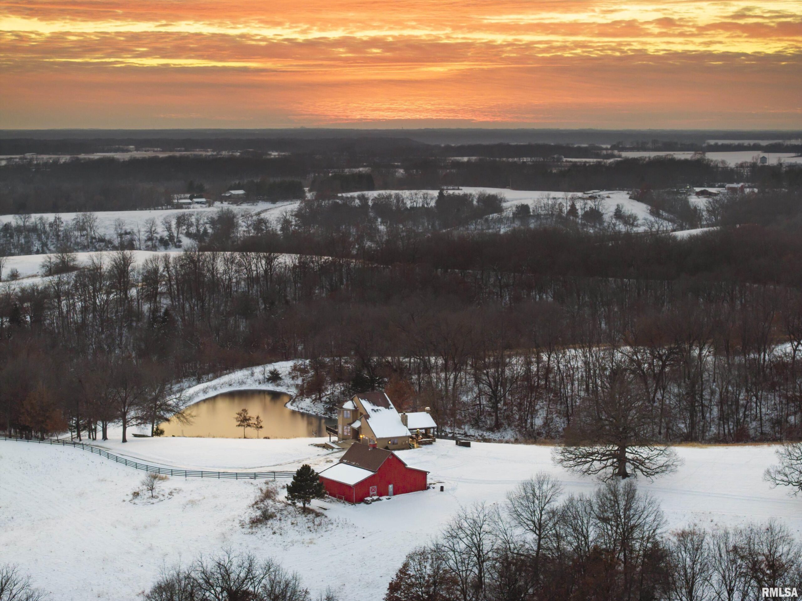Stunning setting w/ home located in center of acreage Breathtaking views out every window Pond views and loaded with fish and swim dock Beautiful Barn with multiple uses 54x34 Pasture fenced for horses/livestock Amazing outdoor living area with outdoor kitchen and fireplace Outstanding hunting 19 tillable acres & 13 acres in Hay Geo-thermal with new condenser New decking Back-up furnace Generator New Culligan water treatment system New Barn Doors Optional furniture and tractor/UTV available 2 fireplaces