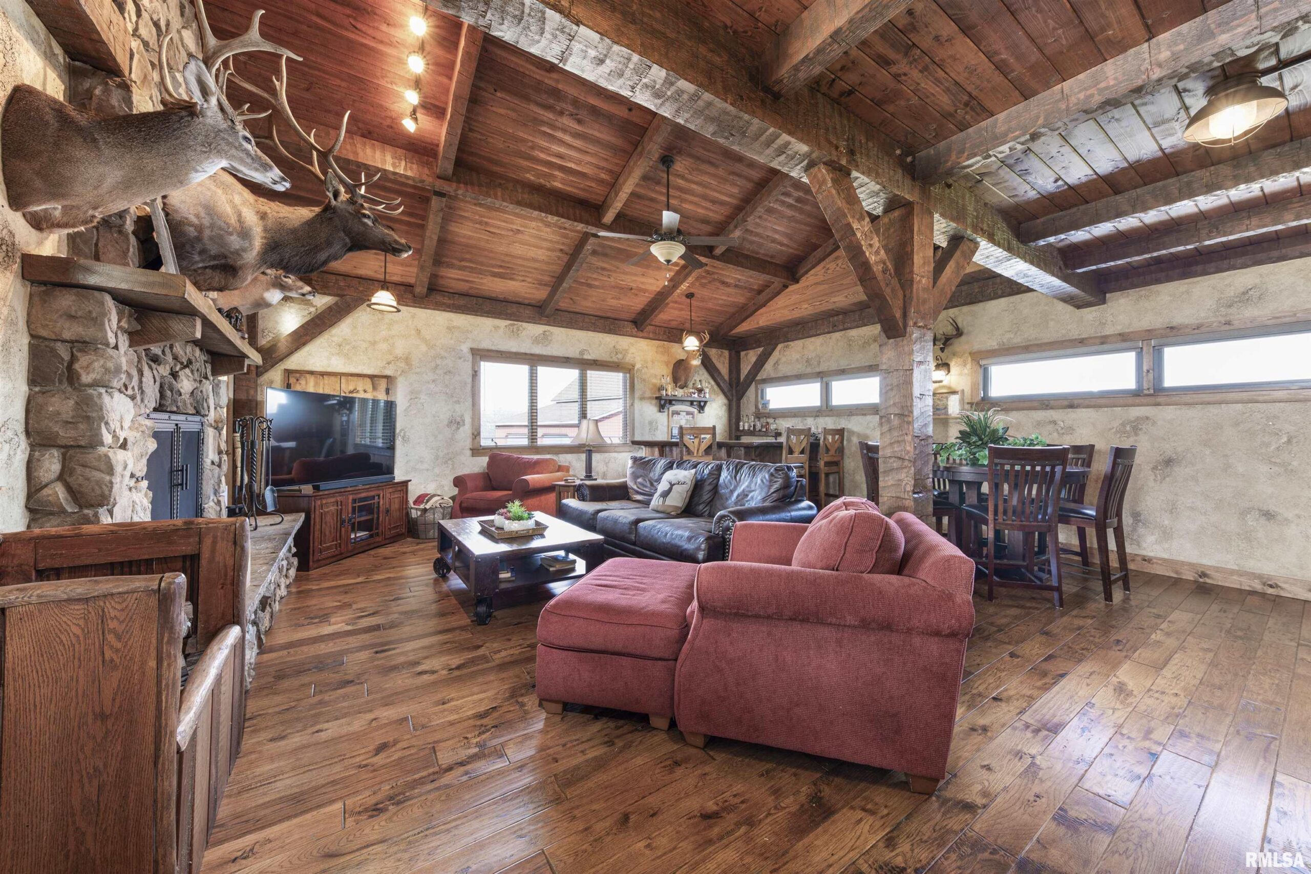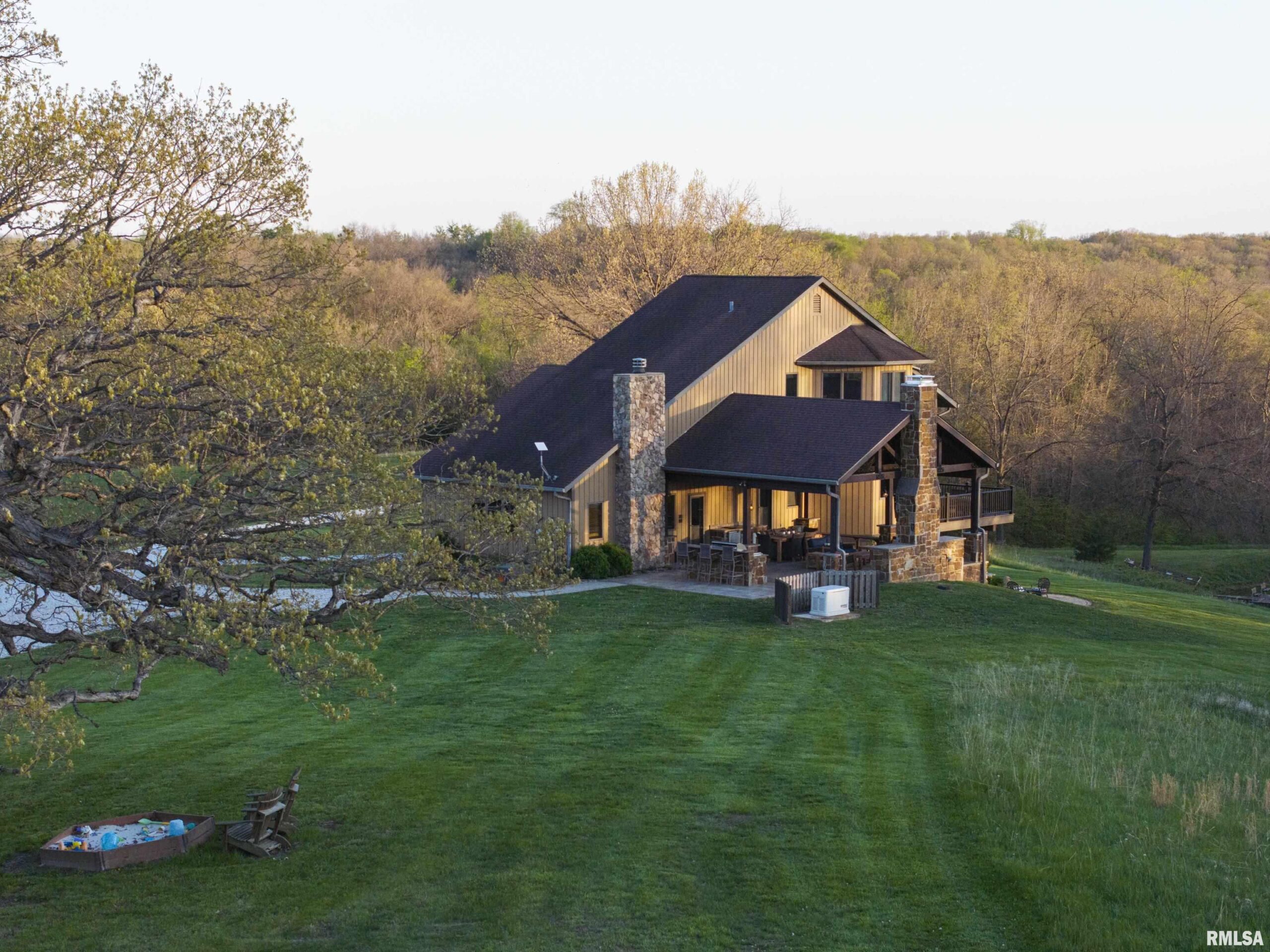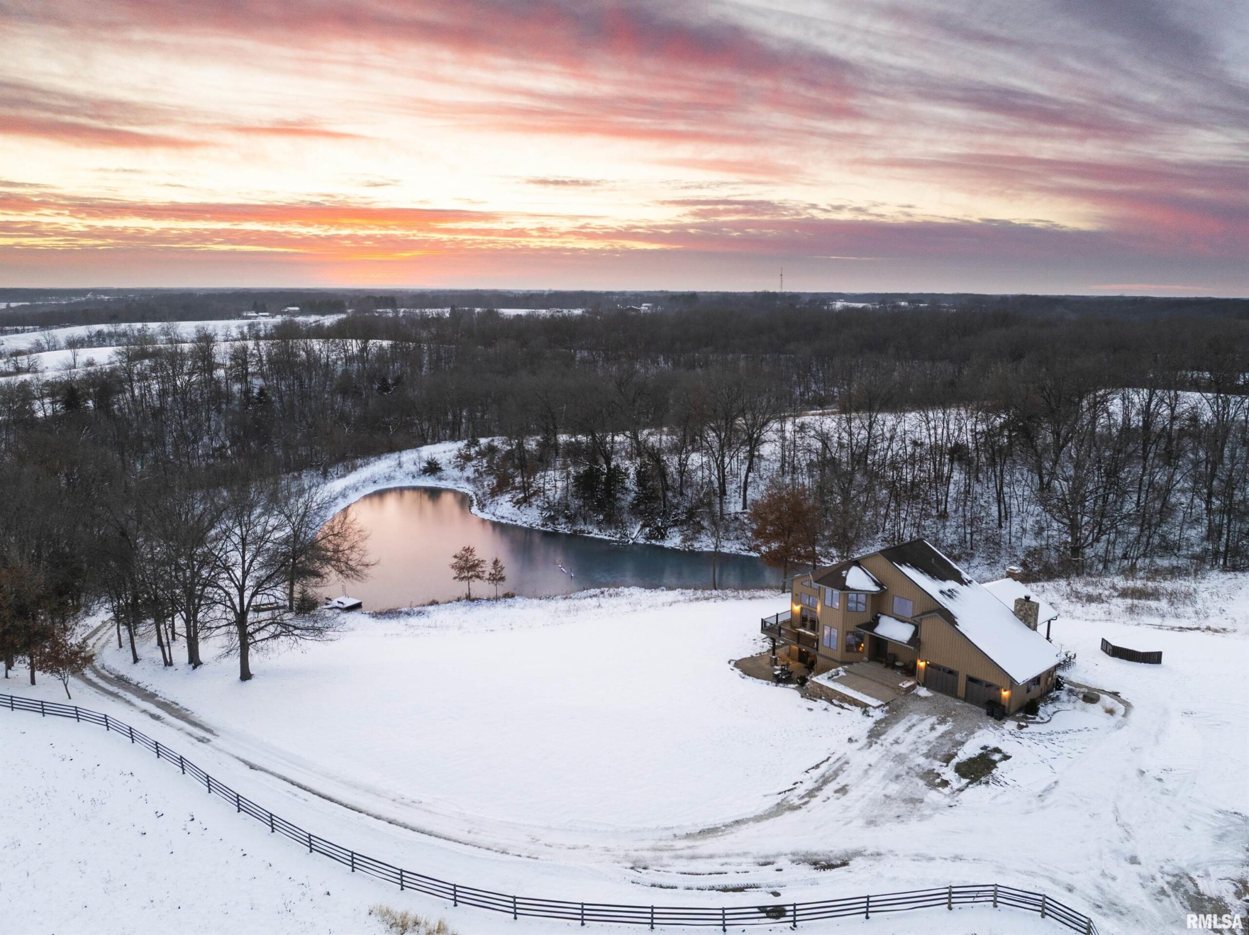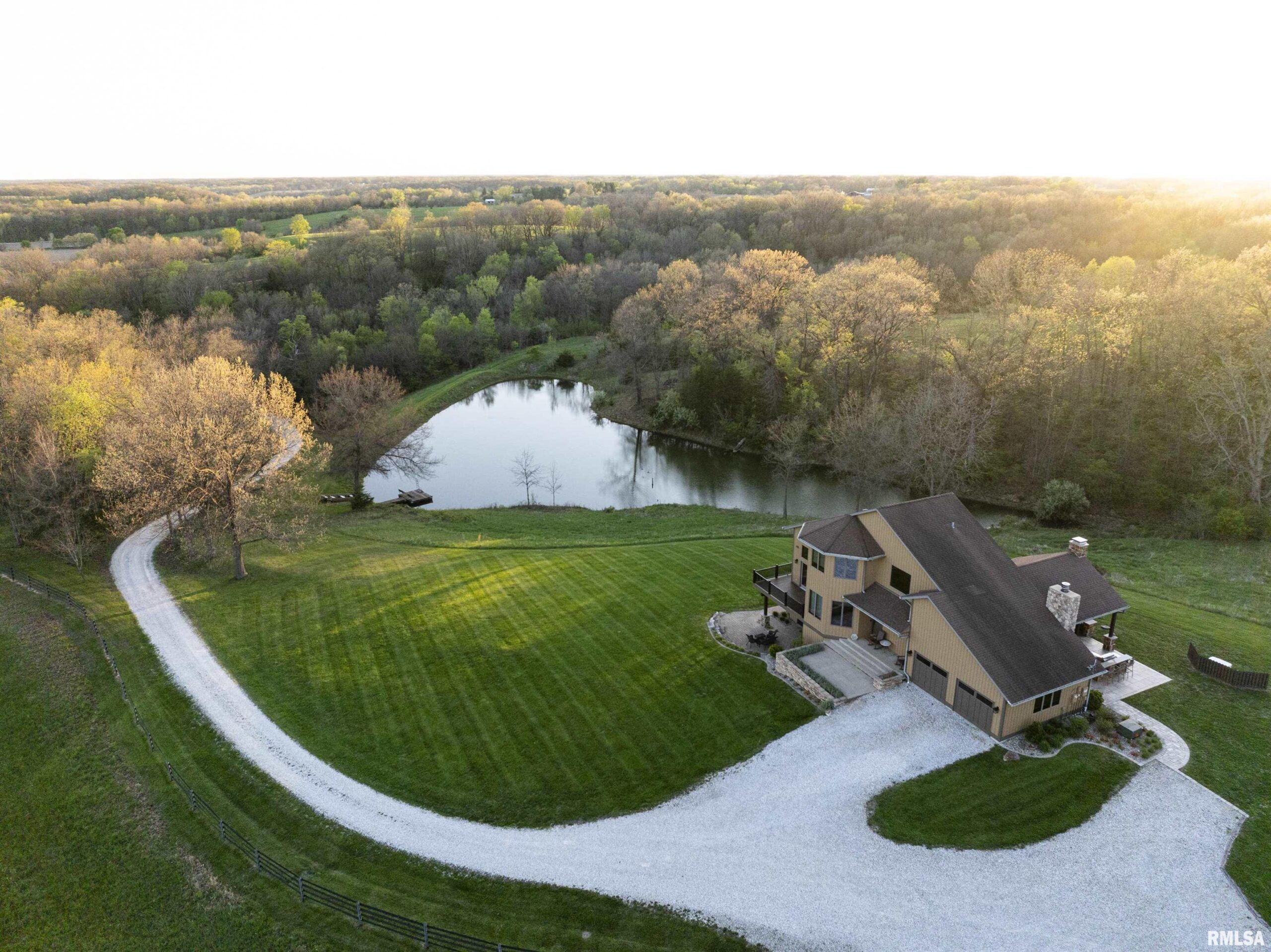 Stunning setting w/ home located in center of acreage Breathtaking views out every window Pond views and loaded with fish and swim dock Beautiful Barn with multiple uses 54x34 Pasture fenced for horses/livestock Amazing outdoor living area with outdoor kitchen and fireplace Outstanding hunting 19 tillable acres & 13 acres in Hay Geo-thermal with new condenser New decking Back-up furnace Generator New Culligan water treatment system New Barn Doors Optional furniture and tractor/UTV available 2 fireplaces