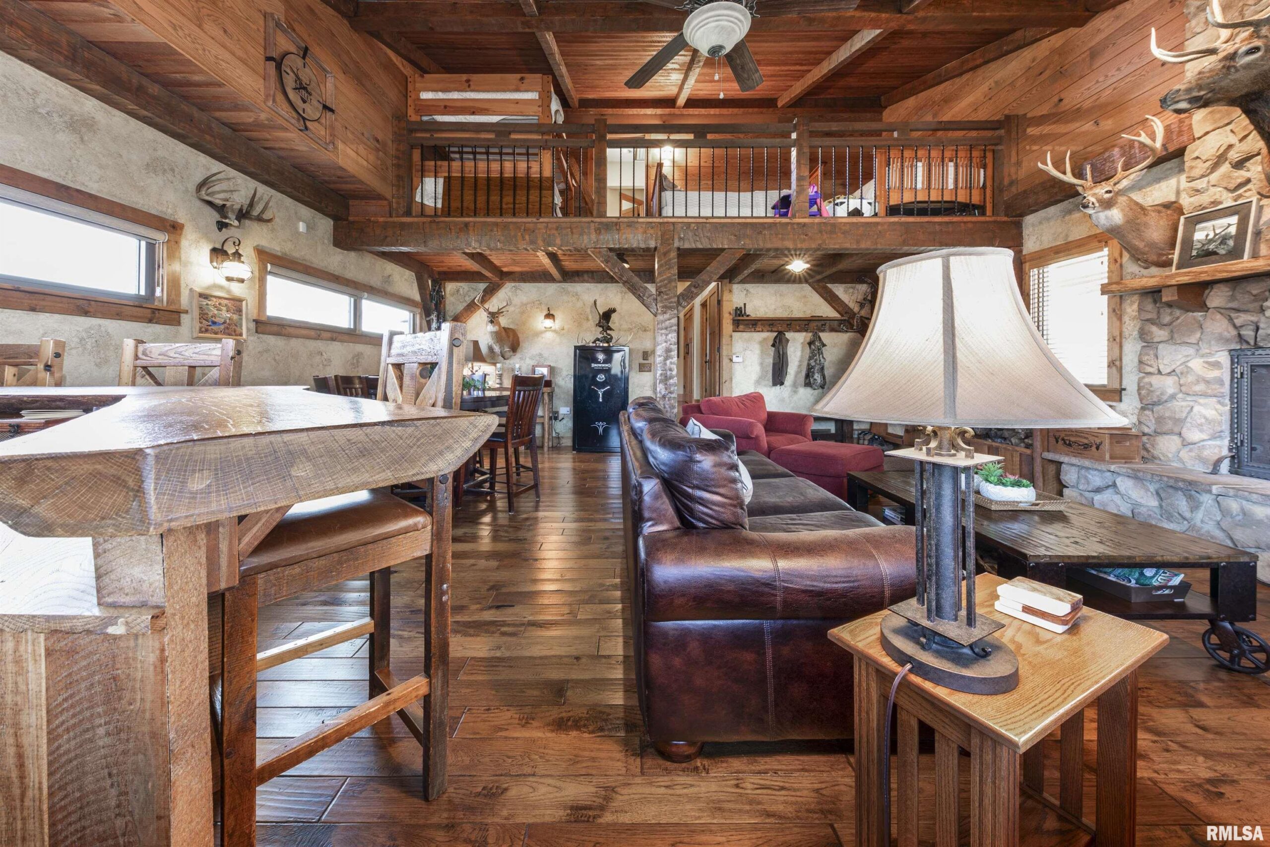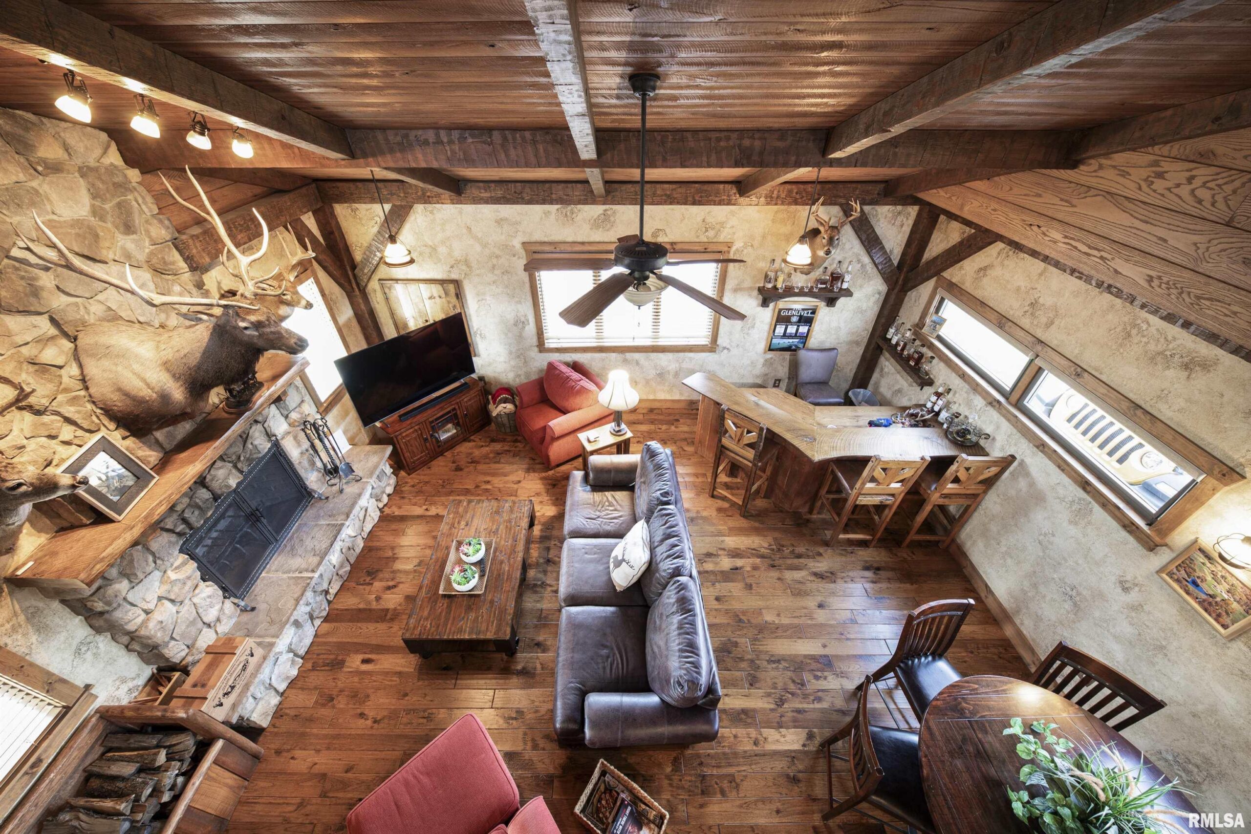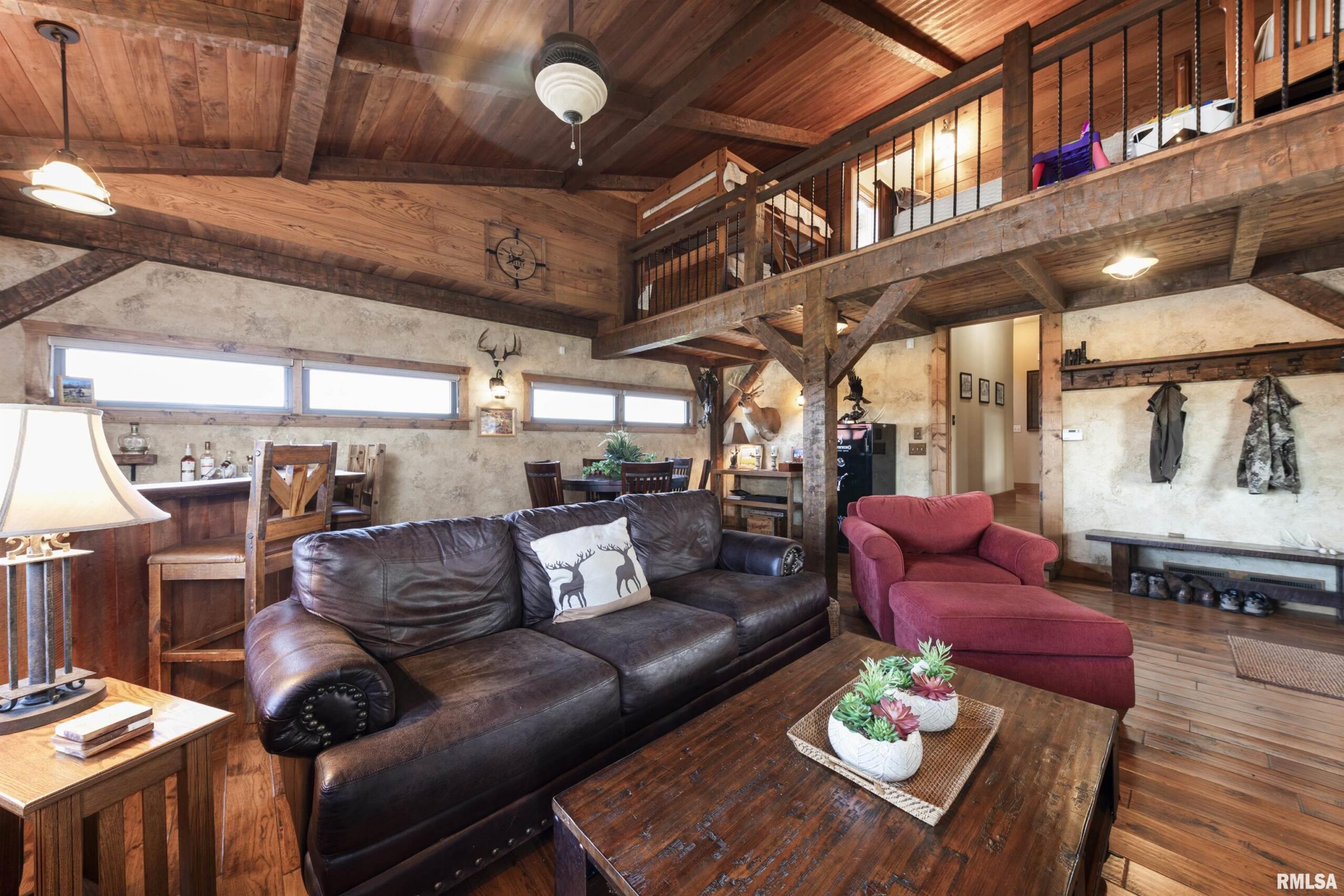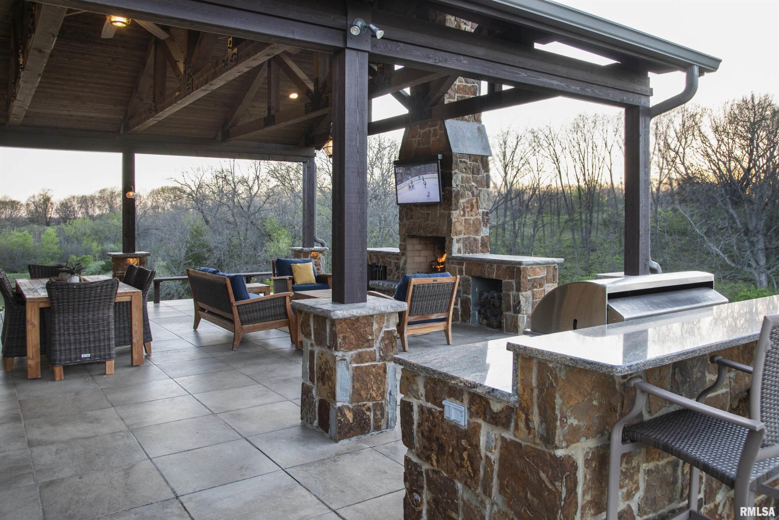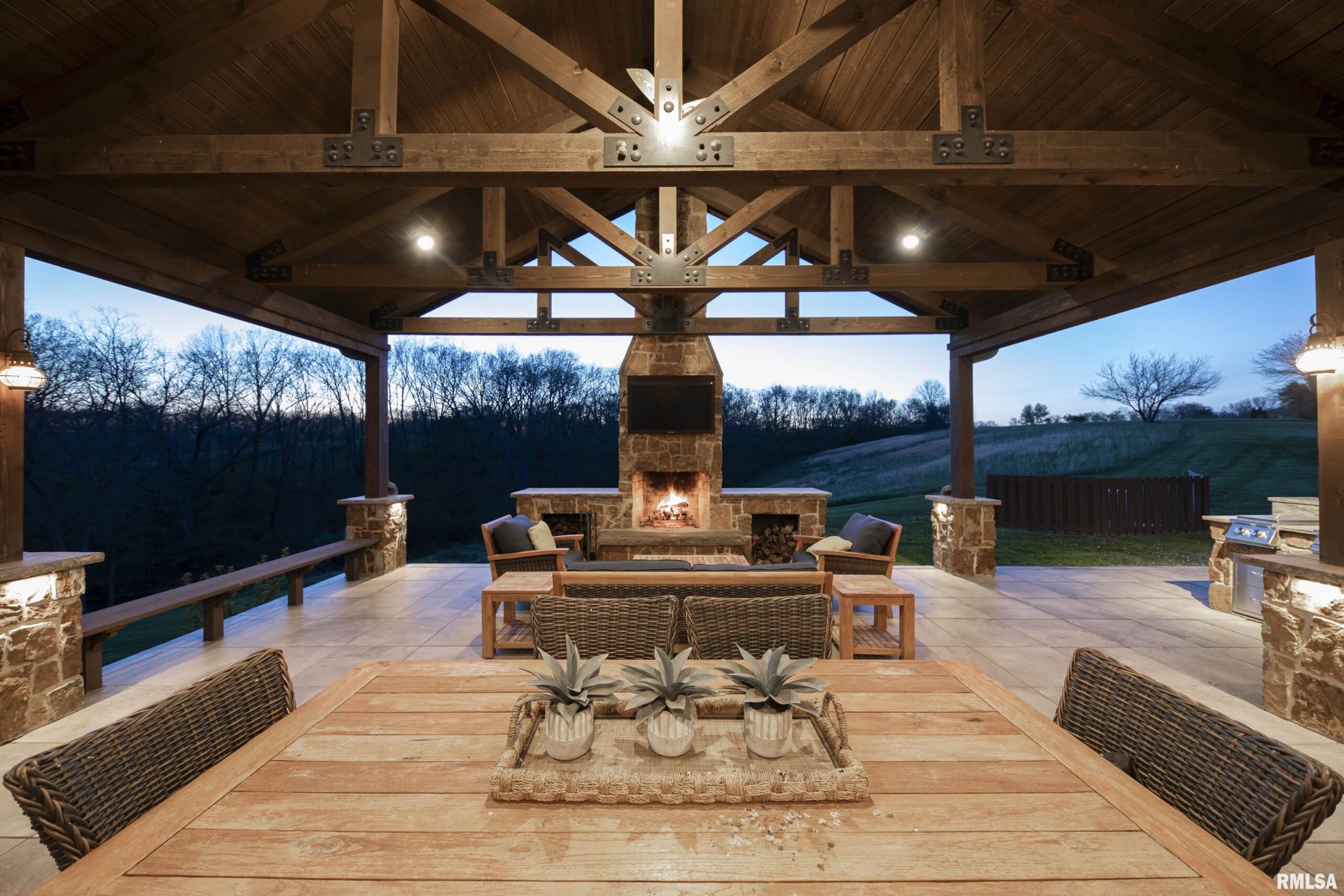 Stunning setting w/ home located in center of acreage Breathtaking views out every window Pond views and loaded with fish and swim dock Beautiful Barn with multiple uses 54x34 Pasture fenced for horses/livestock Amazing outdoor living area with outdoor kitchen and fireplace Outstanding hunting 19 tillable acres & 13 acres in Hay Geo-thermal with new condenser New decking Back-up furnace Generator New Culligan water treatment system New Barn Doors Optional furniture and tractor/UTV available 2 fireplaces